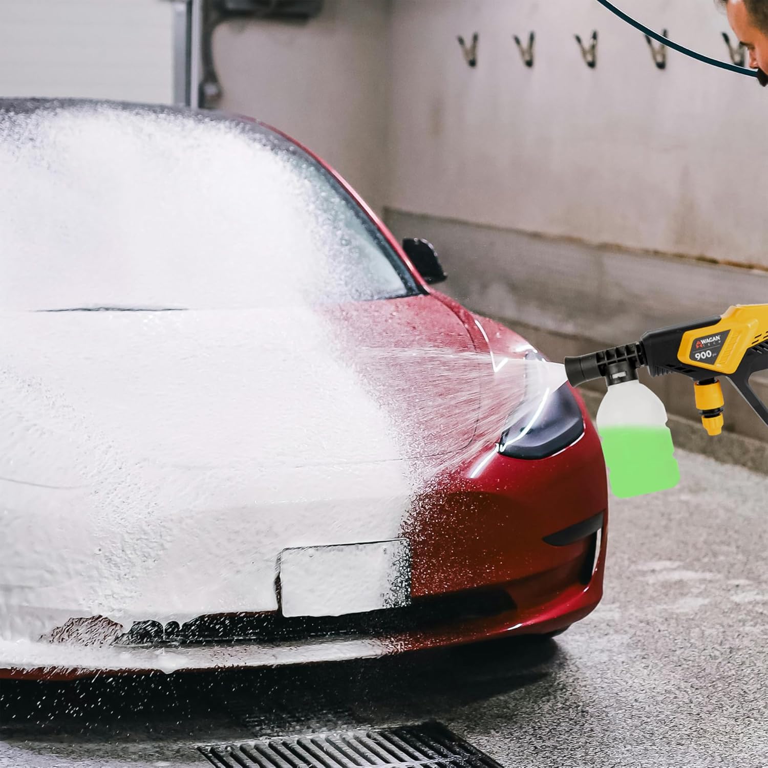 This Wagan high-pressure power washer offers a strong 900 PSI water flow, making it effective for cleaning decks, patios, driveways, and vehicles. Despite its powerful performance, it remains compact and easy to handle for regular home use, allowing you to tackle outdoor messes efficiently.Equipped with a 6-in-1 adjustable spray nozzle, you can quickly switch between spray patterns—0°, 15°, 25°, 40°, jet, and shower—to suit different cleaning tasks. Whether rinsing windows, removing stubborn dirt from tires, or gently washing furniture, no extra tools are needed—simply rotate to your desired spray mode.Powered by two UL-certified batteries, each lasting up to 40 minutes, this cordless power washer ensures safe, long-lasting operation. The tangle-free, durable PVC hose extends 5 meters for greater reach, resisting kinks and recoil for smoother cleaning in any environment.Attaching to a standard garden hose is easy with the quick connector, and the built-in filter keeps debris out of the pump for added protection—ideal for off-grid or remote use. Its portable design, along with a storage case, makes it perfect for on-the-go outdoor cleaning, car trips, camping, or quick household jobs.