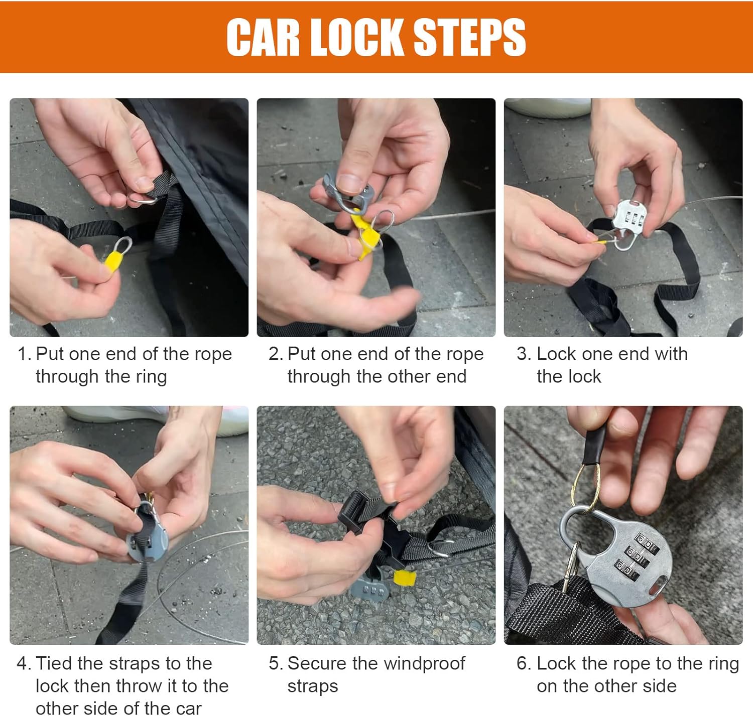 Design Details: 1: With Door Zipper in the left for easy access. 2. Windproof Bands at front & rear to fix your car cover In heavy wind weather. 3.Reflective Stripes to remind people at the night. 4.Pretty Mirror Pockets perfectly protect your mirror form damage. 5: Adjustable elastic hems at the bottom allows you adjust the size easily. 6: Four tie-downs help you to tie the cover to four wheels, Not worry about blow away on a windy day