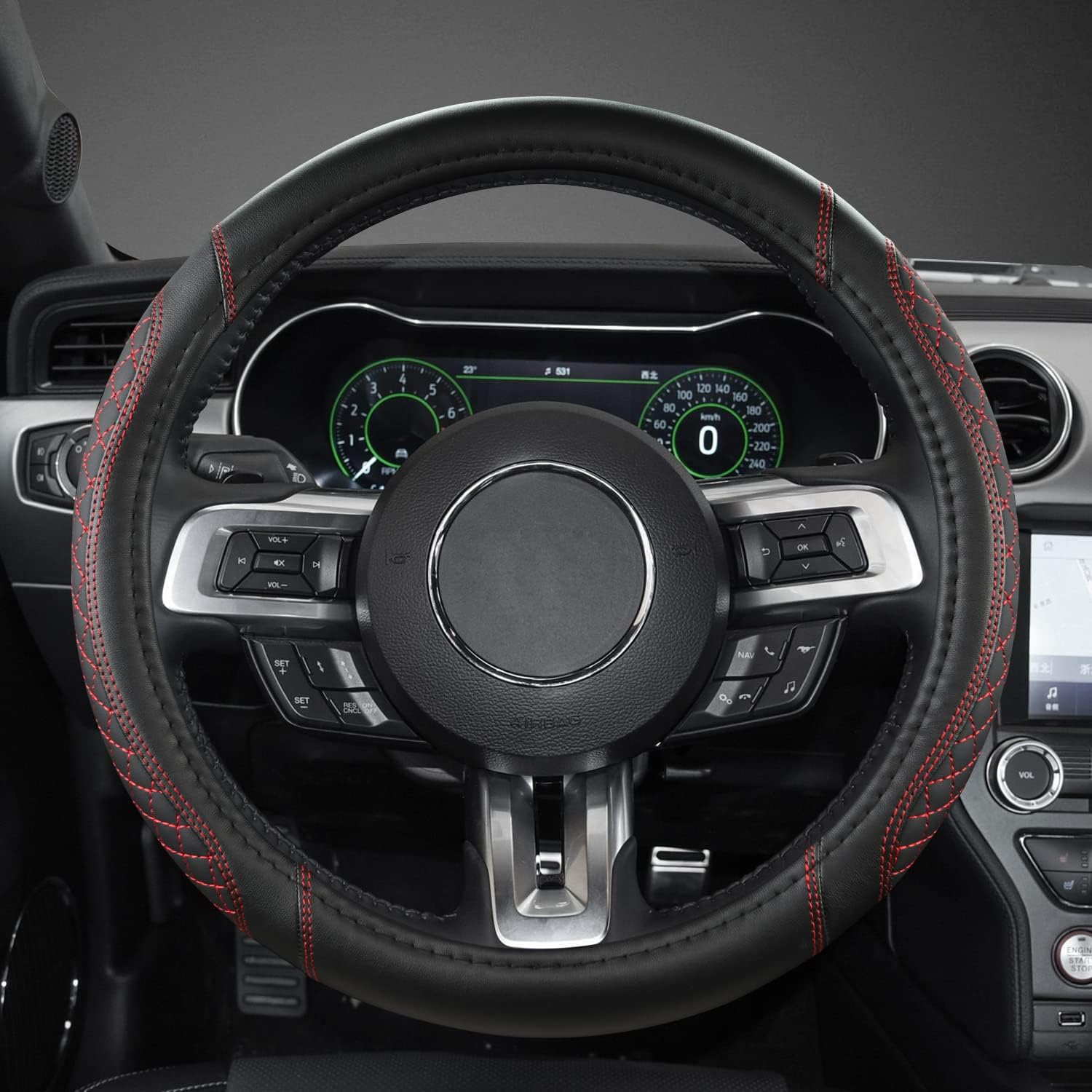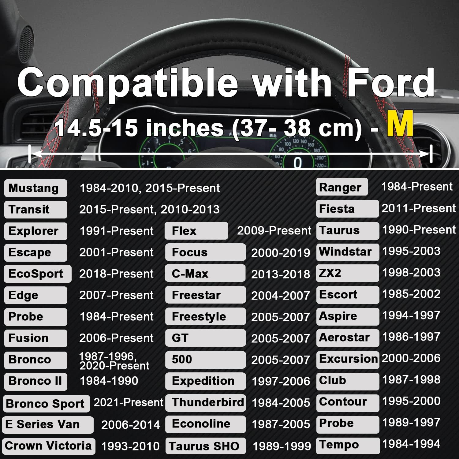 【HIGH QUALITY MATERIAL】This Ford steering wheel cover is made of high quality leather, which is soft texture, comfortable, eco-friendly, wear-resistant and durable.