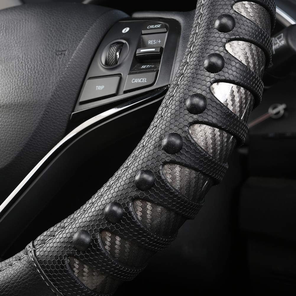 Effective Anti-skid Design – The anti-slip leather nail and cutout design greatly improves the grip and improves the control of the steering wheel. It can massage your palms and reduce fatigue during long distance driving.