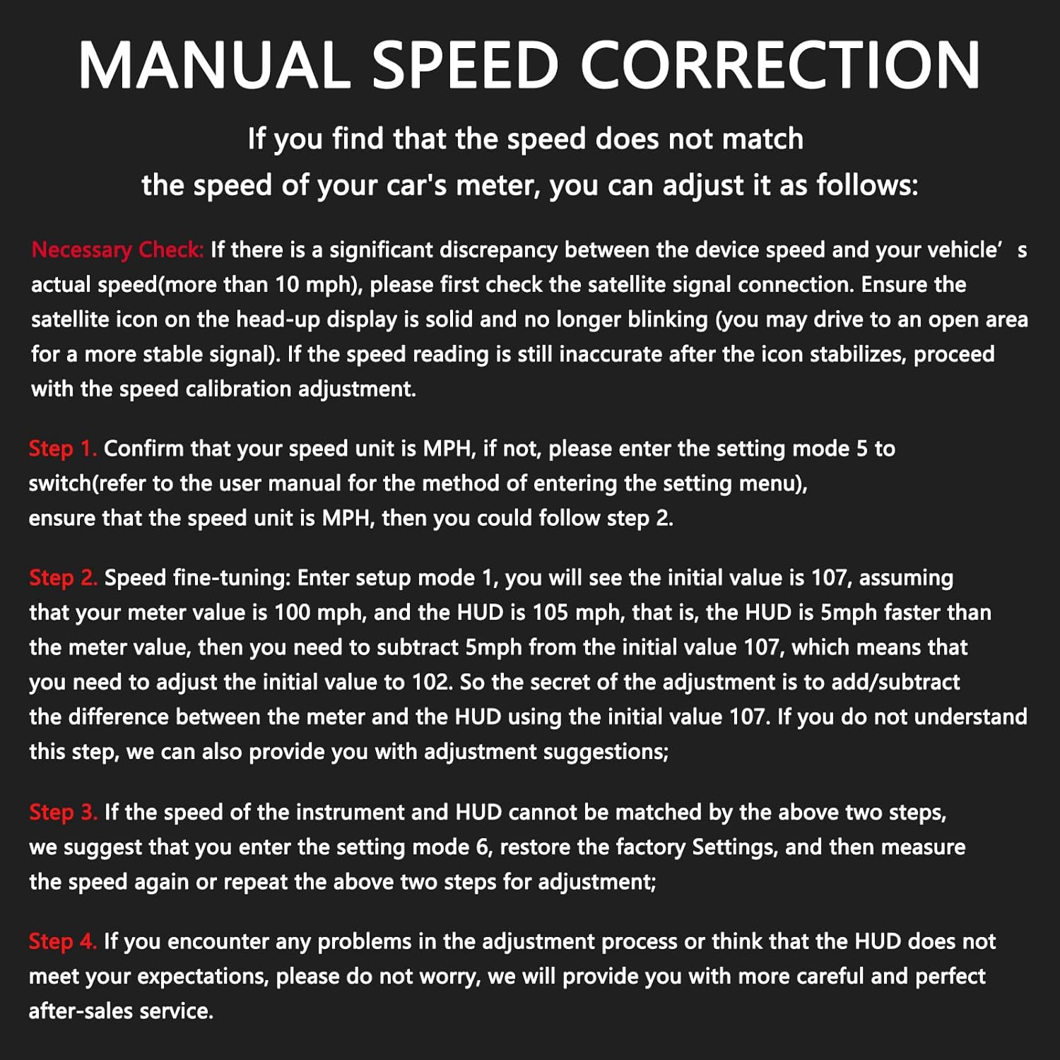 【After-sales service】If you encounter any problems after purchase or think that the HUD does not meet your expectations, please do not worry, we will provide you with more careful after-sales service.