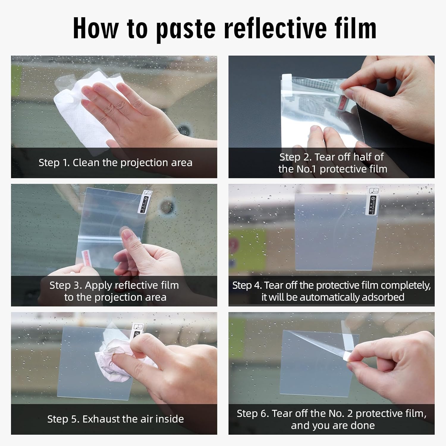 Tear off half of the No.1 protective film, and apply reflective film to the projection area.