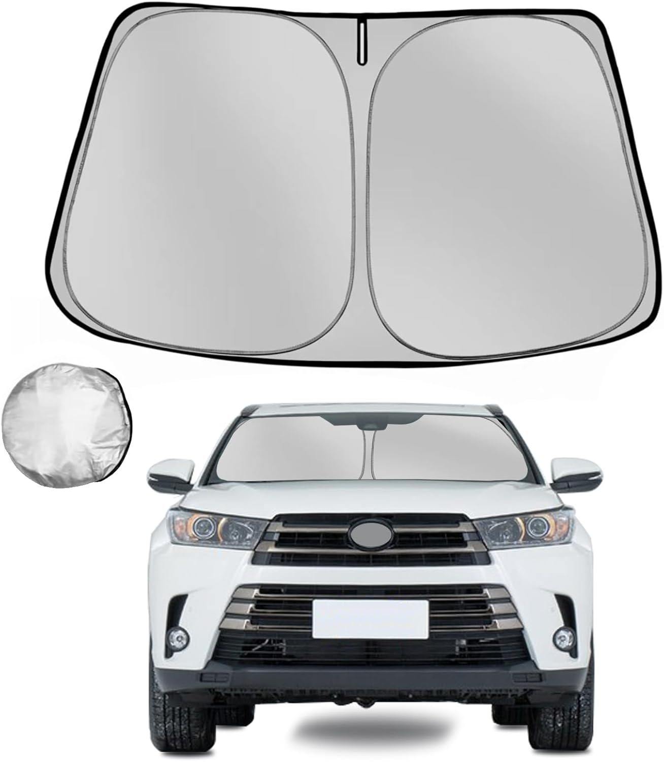 Perfectly fitted design, Fonowka custom windshield sunshade, for 2014 2015 2016 2017 2018 2019 Toyota Highlander SUV , The design is precise and seamless, Provide 100% perfect coverage which can fully cover the front windshield, Please confirm your vehicle model and year before purchasing