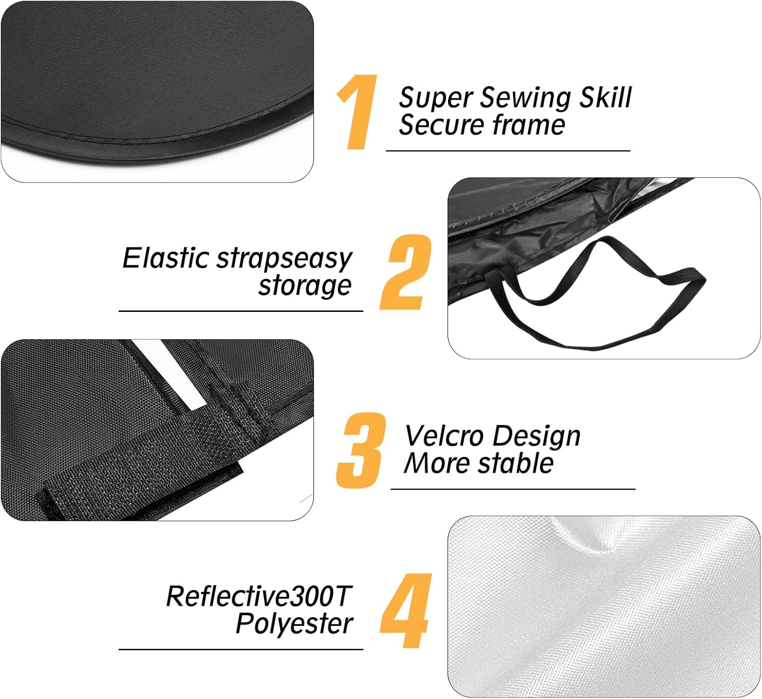 【Easy to Install & Foldable to Store】All you need to do is put the sun shade over the entire windshield, put the visor down and press down, then tighten the Velcro on the sun shade. It’s an easy job. The windshield shield has an elastic memory line, which can be bent and folded into the storage bag, does not take up space, and will not be deformed when used again.You can easily tuck the windshield cover sun shade into your door pocket