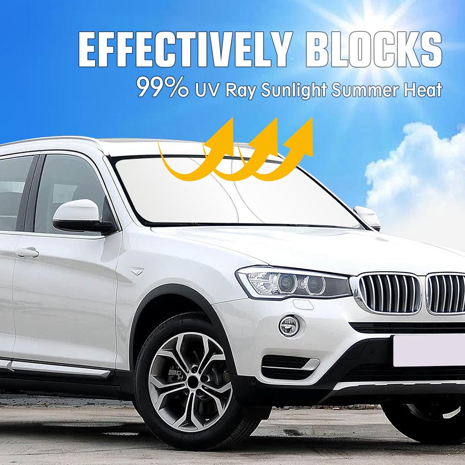 【Perfit Fit】The BMW X3 sunshde is specifically to fit the windshield of your BMW X3 2011-2017. Precise fit design makes a perfect and secure cover to the front window. Protect your car from sun rays & heat damage and keep car interior cool