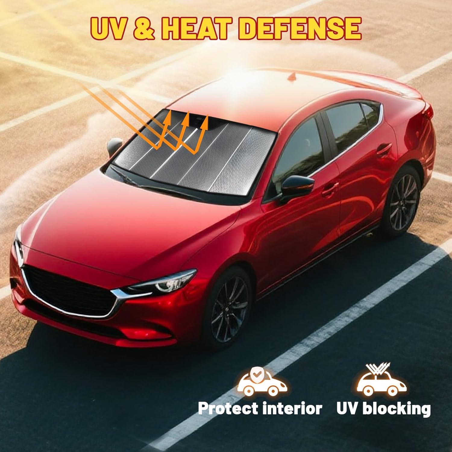 Keeps Car Cool in Hot Weather: Protects your vehicle from heat and shields the steering wheel, windshield, dashboard, and seats from sun damage.