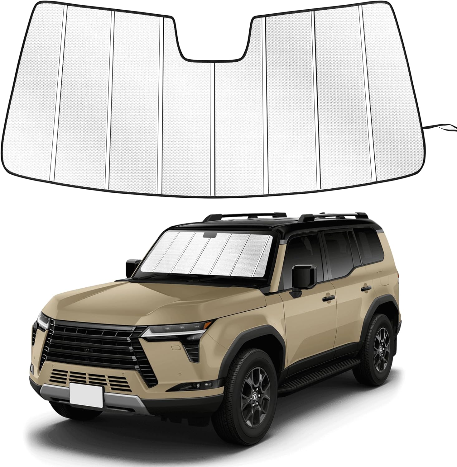 𝐂𝐮𝐬𝐭𝐨𝐦 𝐅𝐢𝐭 𝐖𝐢𝐧𝐝𝐬𝐡𝐢𝐞𝐥𝐝 𝐒𝐮𝐧𝐬𝐡𝐚𝐝𝐞: Custom-fit for your Lex-us GX550 2024-2026 models, this custom-fit windshield sunshade ensures seamless alignment with your vehicle’s contours. It provides maximum coverage without blocking rearview mirrors or sensors. A necessary Lex-us GX 550 2024-2026 interior accessories in Summer