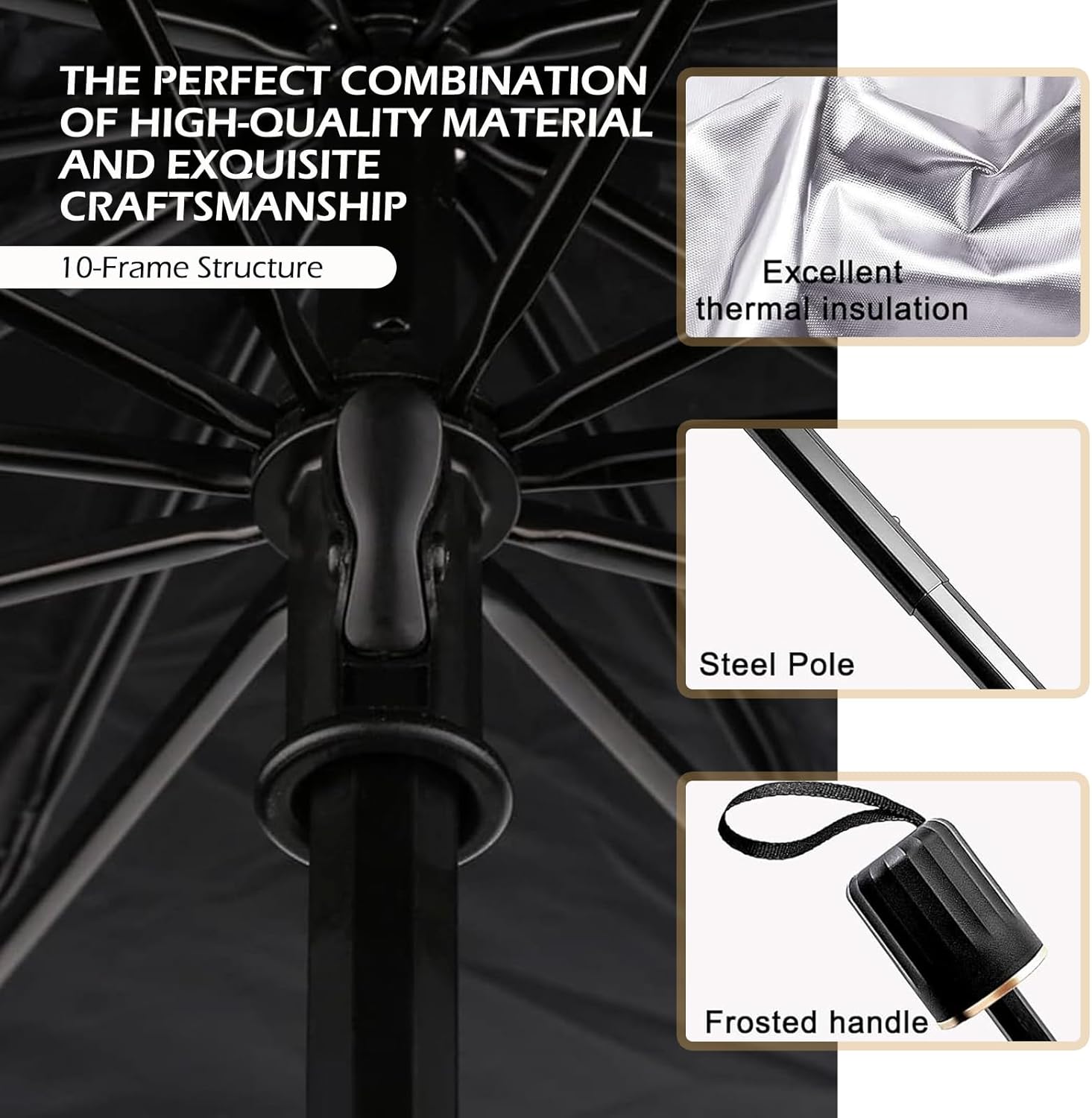Heat Insulation Material: This windshield sun visor adopts a reliable heat insulation coating, which strongly reflects sunlight, eliminates external heat, keeps the car cool, and is a must-have accessory for hot summer.