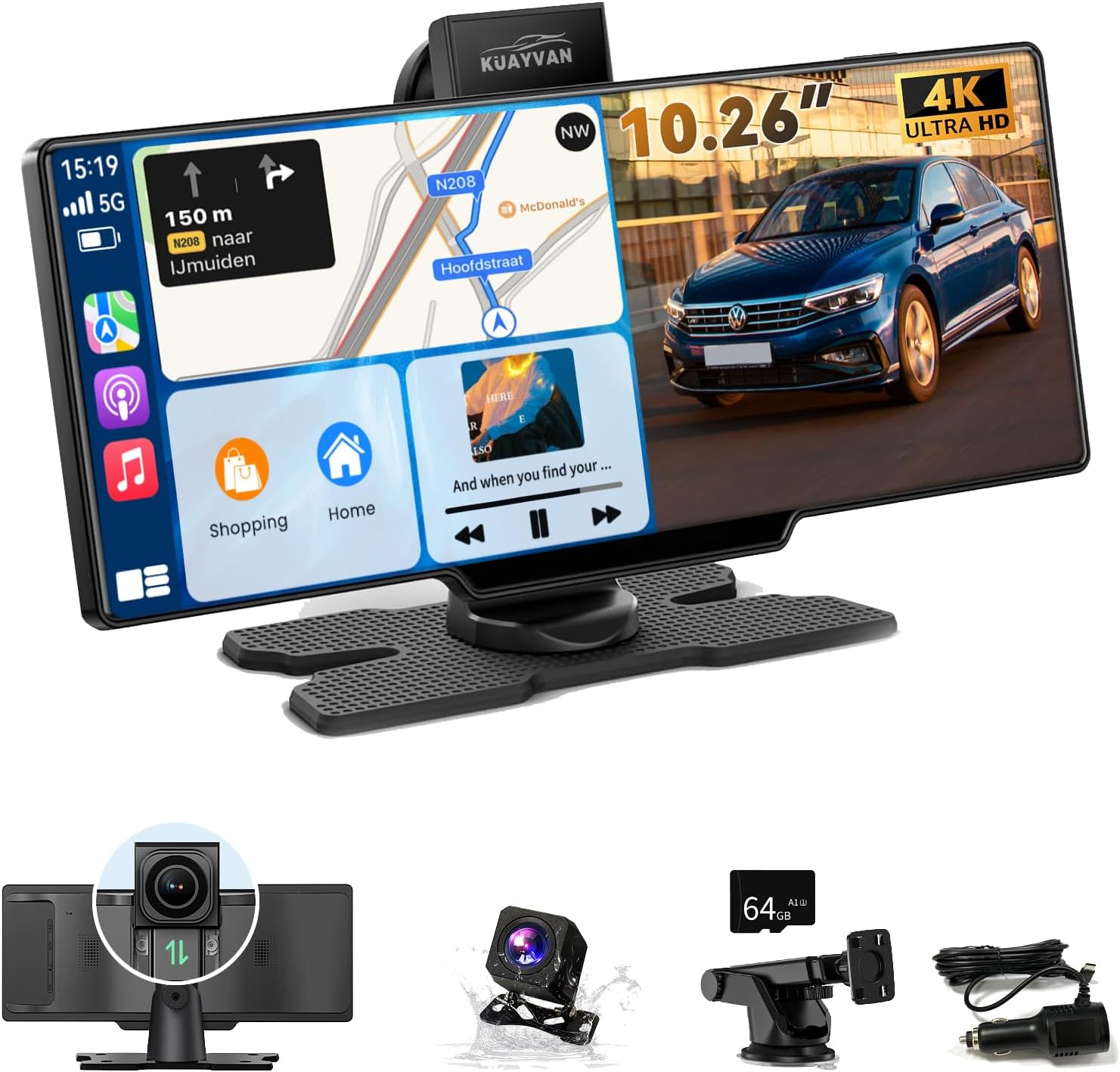 【Front 4K+Rear 1080P Camera】The car display is equipped with front 4K car recorder and comes with a 1080P rear view backup camera, ensuring a clear view of what’s behind you for safer reversing and parking. With dual-screen recording capabilities, both the front and rear views can be recorded simultaneously, giving you a complete and accurate record of your journeys.(178° full-viewing angle)