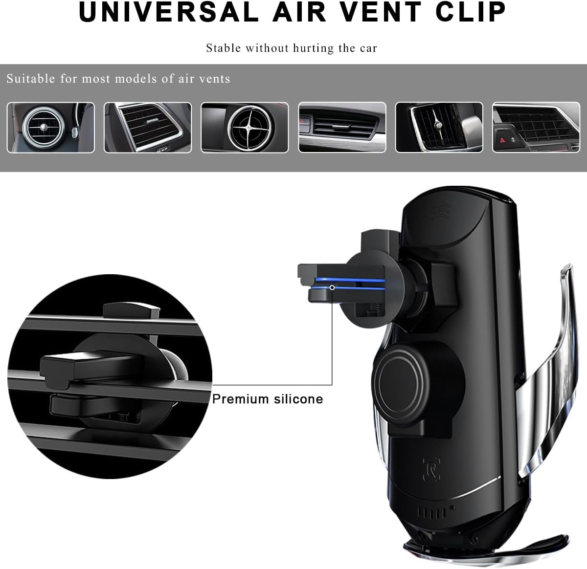 Strong Stability: The car wireless charging stand is equipped with a silicone clip, which can be tightly fixed on the car’s air outlet blades. In addition, the car wireless charging stand can keep the phone stable and prevent the phone from falling due to bumpy driving