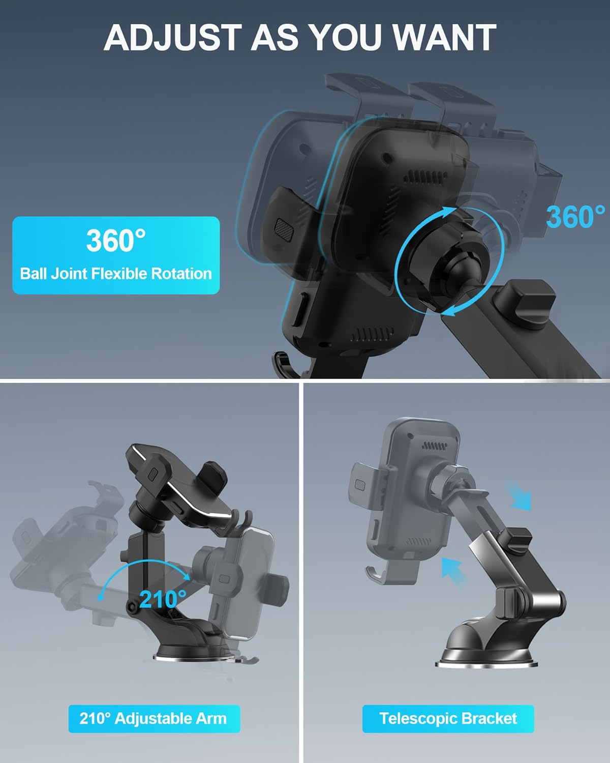 [Smart One-Hand Operation] Auto-Sensing Clamp: Simply tap the charging phone holder to trigger instant locking. Patented gravity-sensor tech adjusts clamping force based on phone size. Reduces driver distraction by 73% — “Tap. Lock. Go.” keeps eyes on the road