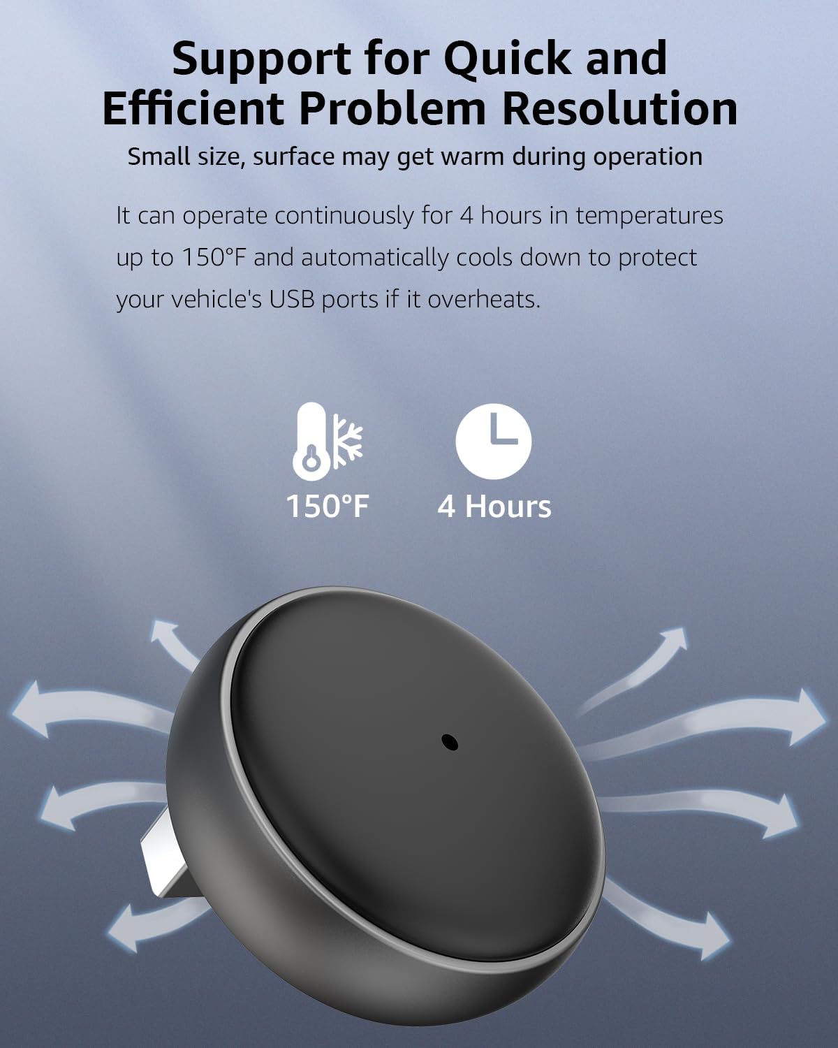 【Ultra-compact and Slim Design】This compact and slim design makes it 50% smaller, perfectly fitting into tight spaces without taking up extra space. Designed with user feedback in mind, it operates at temperatures up to 150°F and automatically cools down to protect your car’s USB port if it overheats. Tested for over 10,000 insertions, it’s 100% compliant with USB standards, providing a jitter-free, long-lasting connection.