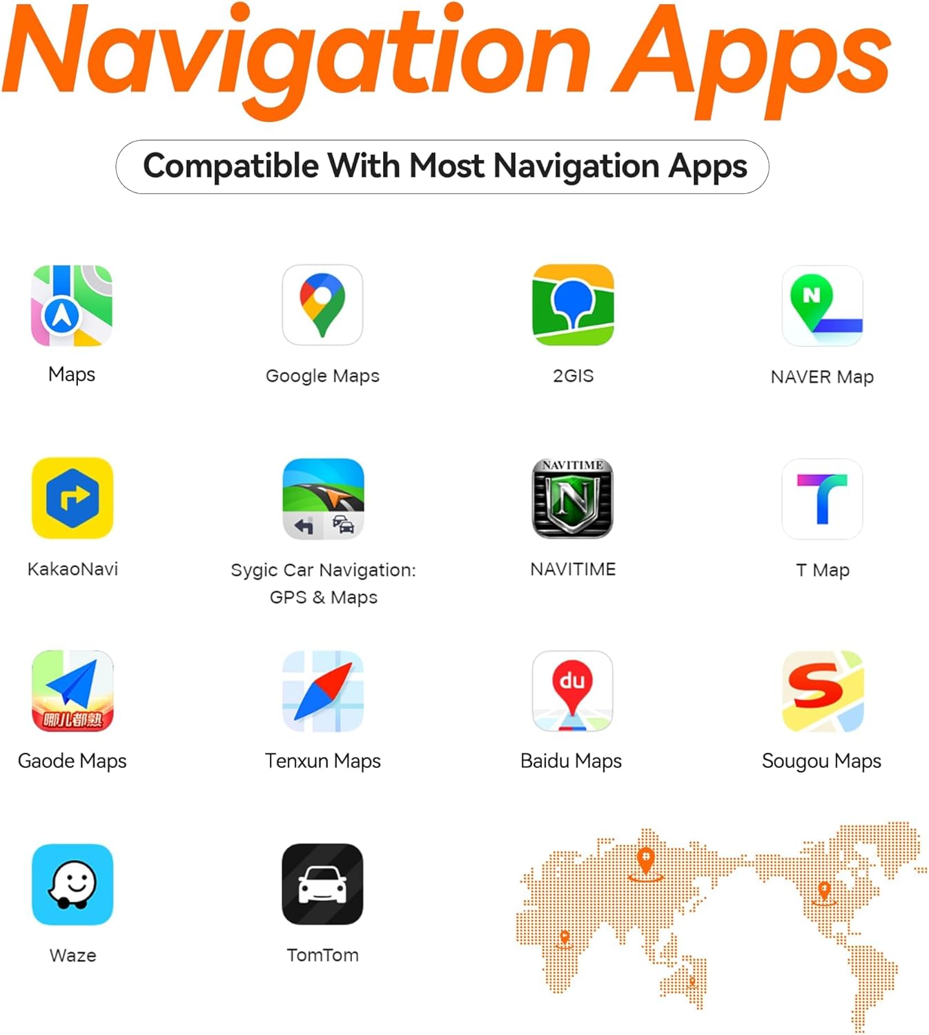 Intelligent Ecosystem Full Coverage: Supports 150+ native apps including Apple Maps/Google Maps navigation/music/calls/radio/Siri voice control via the usb bluetooth carplay adapter for car. Exclusive driving mode touch interaction system (knob/button/voice tri-mode operation) with the wireless carplay adapter for iphone for car ensures safer driving operations.