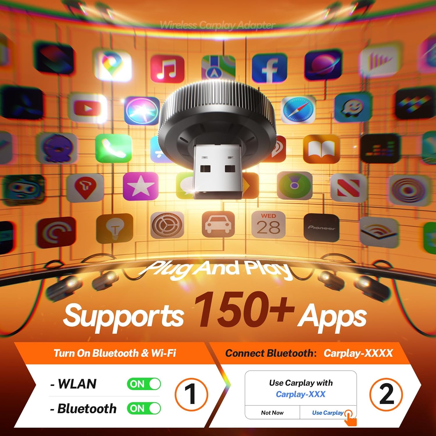 Instant Connection Upon Entry: Plug and Play! With the wireless carplay adapter: Only the first pairing required; subsequent automatic reconnection kicks in the moment your car starts. Equipped with the latest Bluetooth technology: The carplay wireless adapter doubles connection speed—by the time you shift gears, the CarPlay interface is preloaded! Bid farewell to manual connections forever. Step in and start.