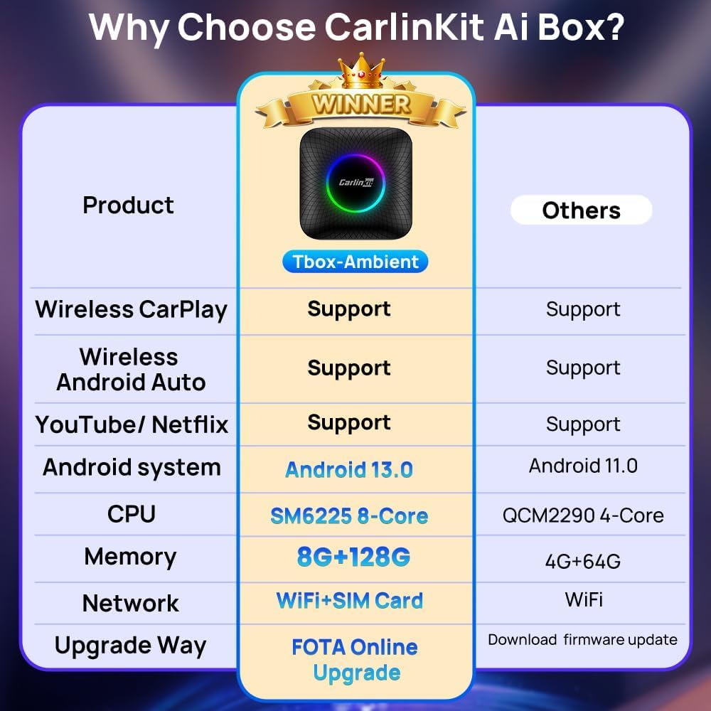 【Android System:】 Android Auto Wireless Adapter CarlinKit Ai Box Comes with Open Android 13.0 System.