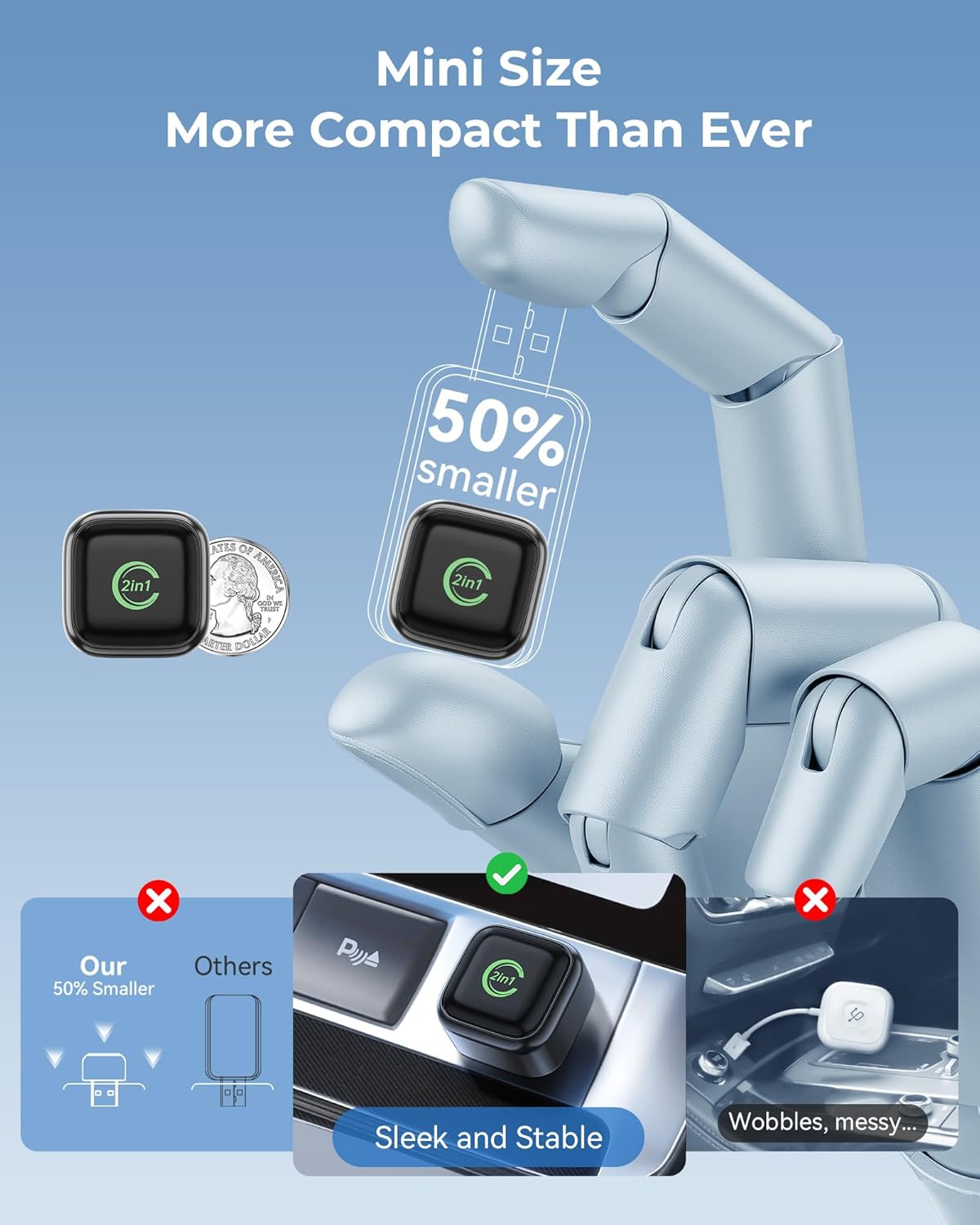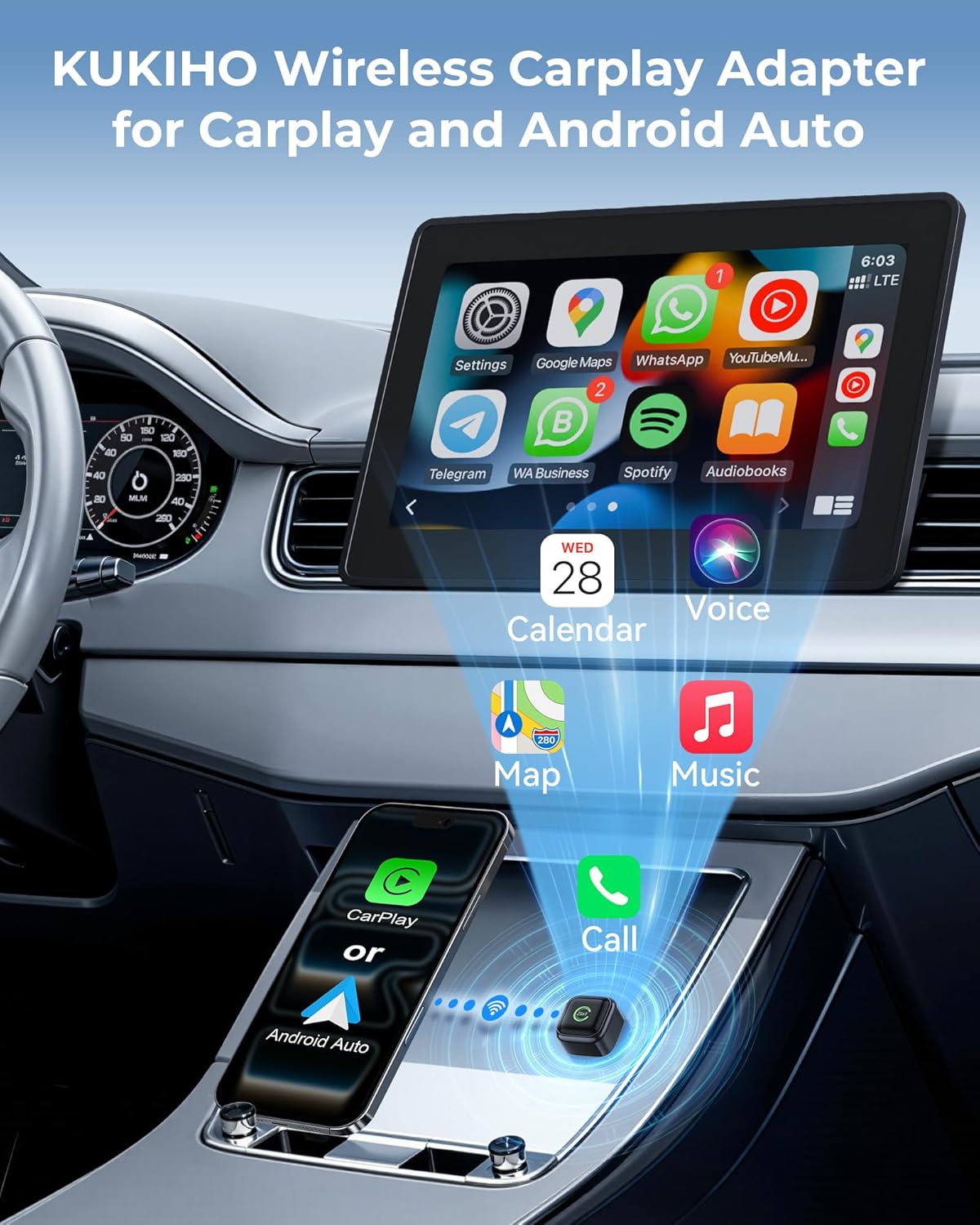 High-Performance Wireless CarPlay Adapter – Smooth & Stable:Equipped with dual-core processing and 2.4G + 5G dual-band transmission, this carplay wireless adapter delivers low-latency navigation, clear hands-free calls, and stable streaming for both CarPlay and Android Auto.