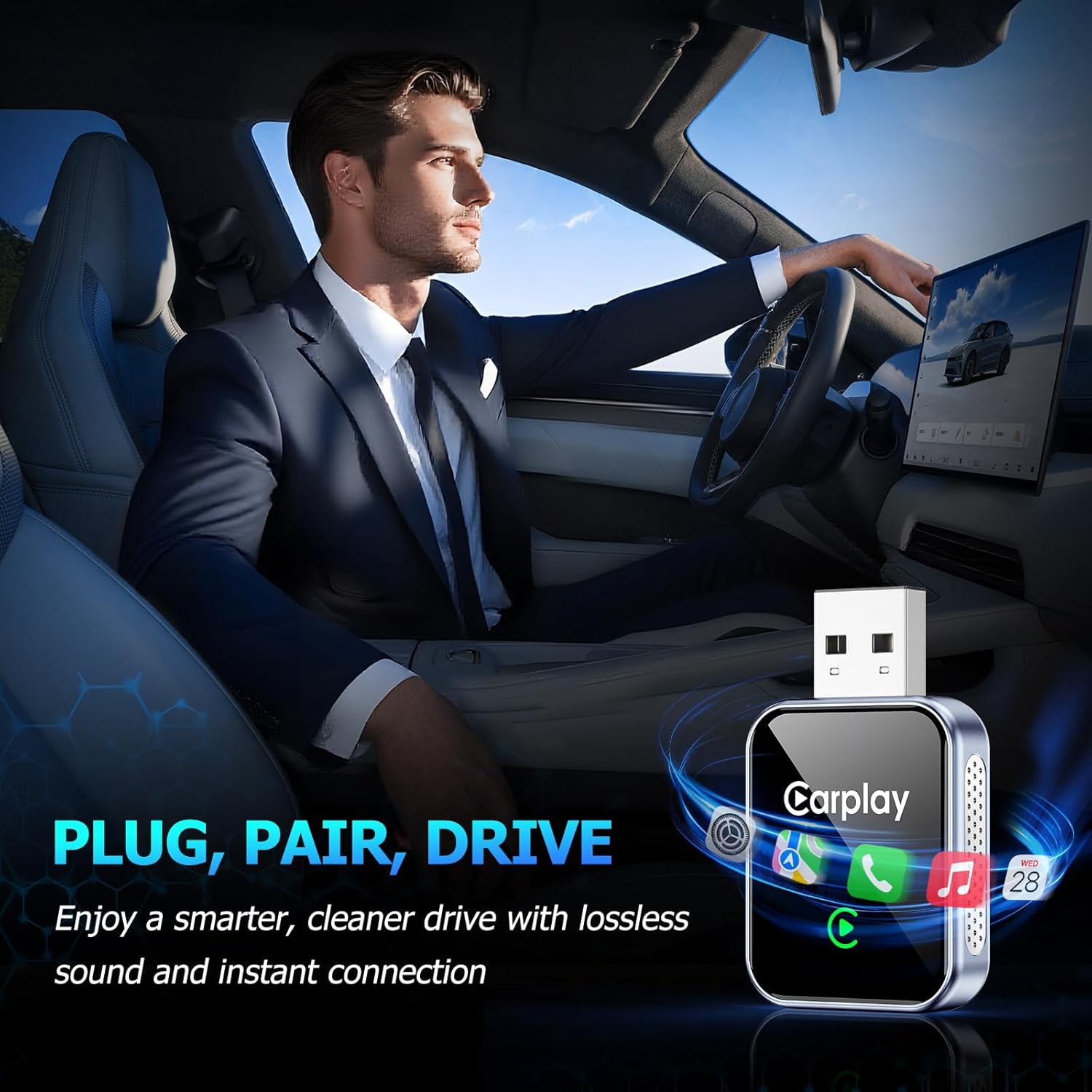 I’ve been using the Wireless CarPlay Adapter for a couple of weeks, and it’s honestly been a game changer. My car only had wired CarPlay, so constantly plugging in my phone was annoying, but this little dongle really fixes that. Setup was truly plug-and-play, I plugged it in, waited a few seconds, and my iPhone connected instantly. Since then, it reconnects automatically every time I start the car. The connection stays stable with no random drop-offs, and Siri, calls, maps, and music all work like they do when wired, just with a tiny delay when starting up. The compact size keeps it from cluttering the console, and it never overheats. Overall, if you want wireless CarPlay without upgrading your whole system, this adapter is reliable, convenient, and definitely worth it.