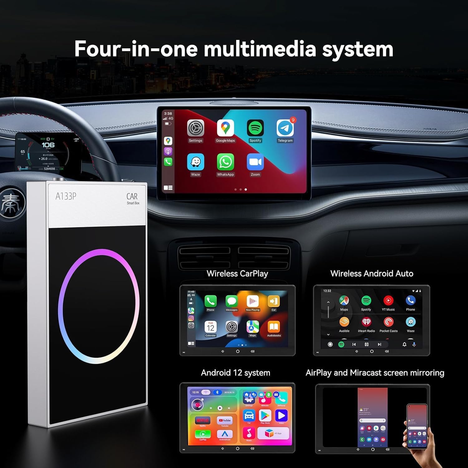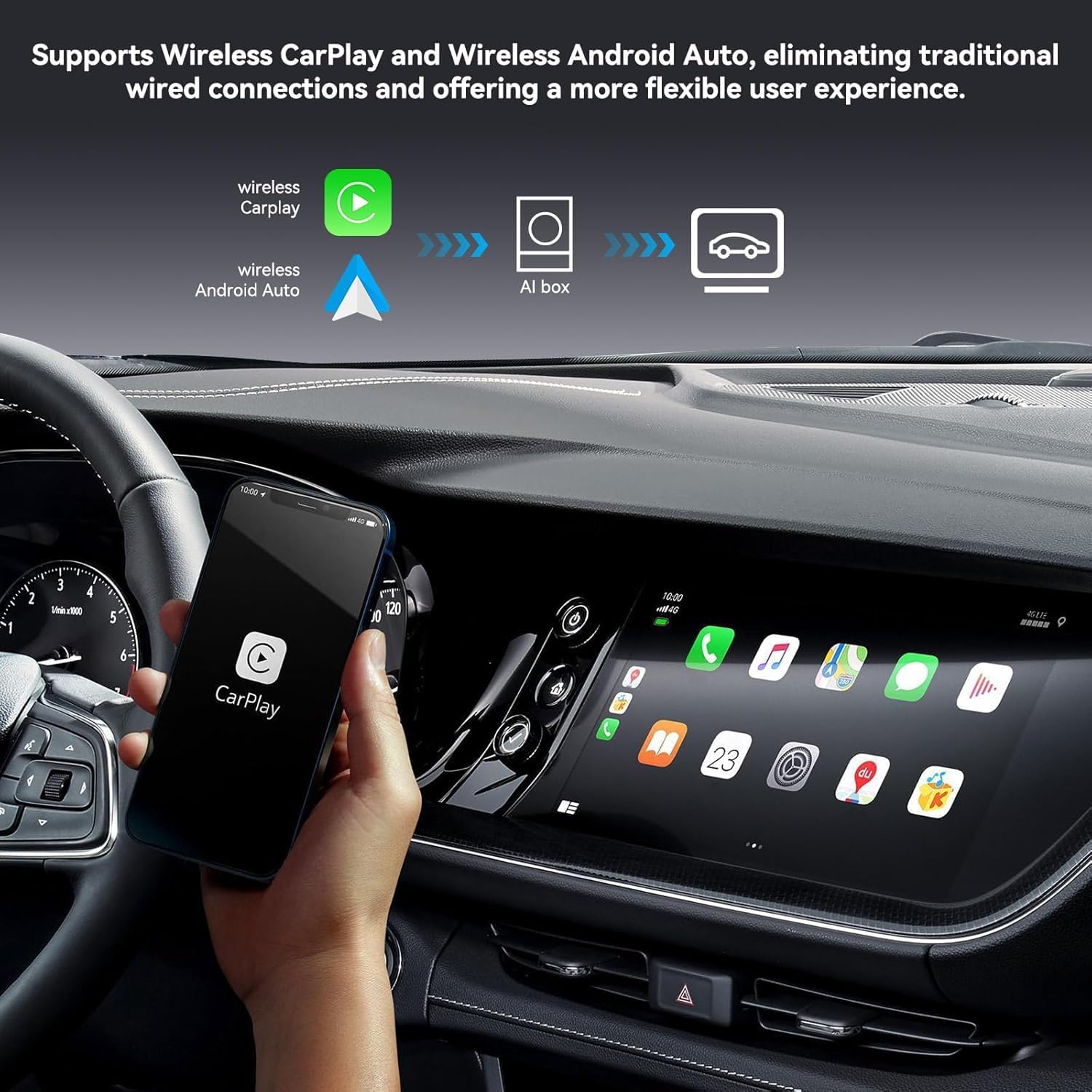 【Wireless CarPlay and Android Auto Adapter】Use it to upgrade your in-car entertainment system by upgrading wired Carplay and Android Auto to wireless, get rid of messy cables. Just connect your phone, then you can access your apps, maps, music, and more on your car’s touchscreen. With voice control, you can do it all – make calls, get directions, play music, and more.