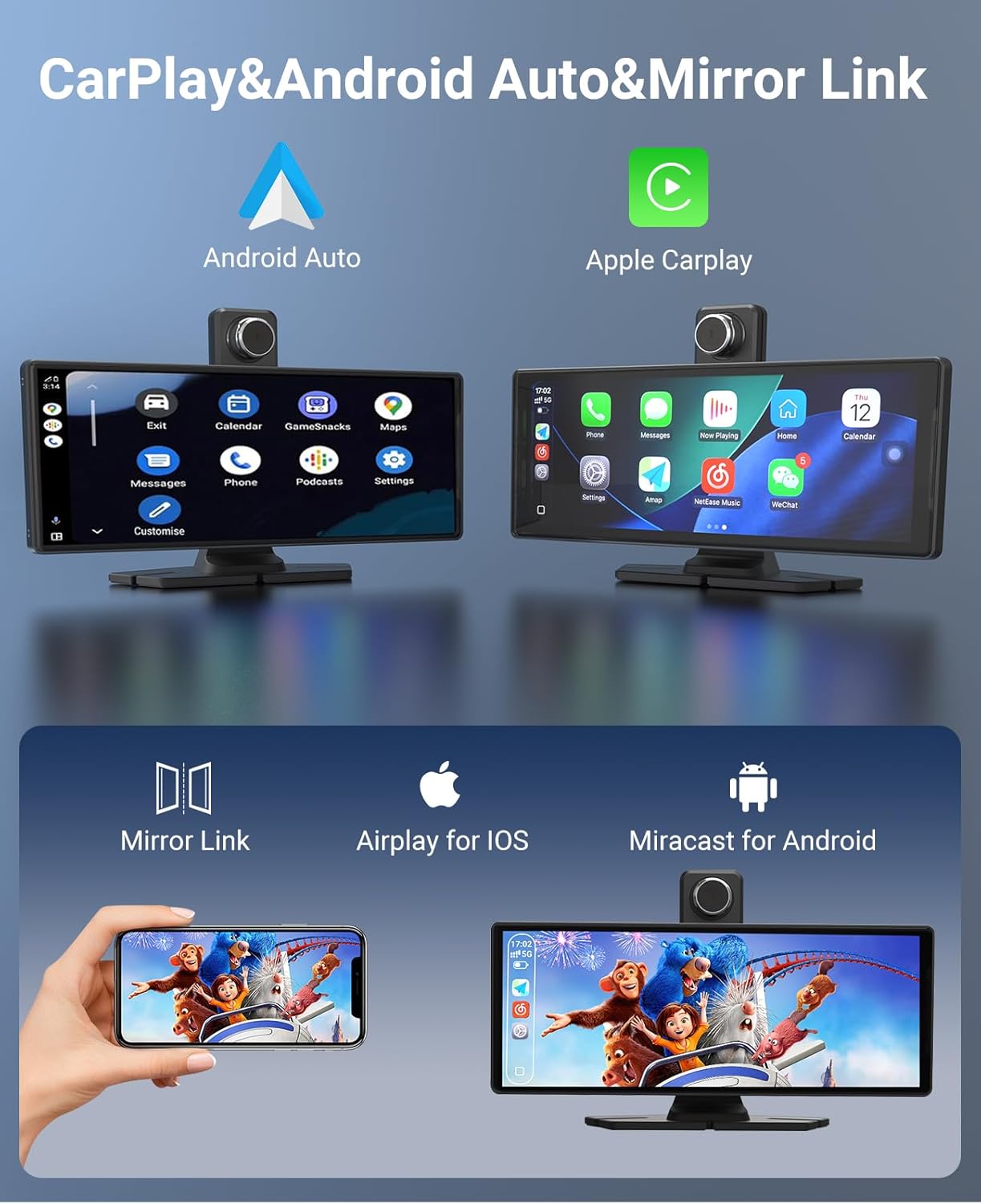 【Wireless CarPlay & Android Auto Smart Screen】Upgrade your traditional car into a smart, safe cockpit. Just connect your phone wirelessly to access navigation, music, and calls. Use voice commands with Siri or Google Assistant for true hands-free control. As one of the most wanted new car essentials, it’s the perfect tech gift for any driver.