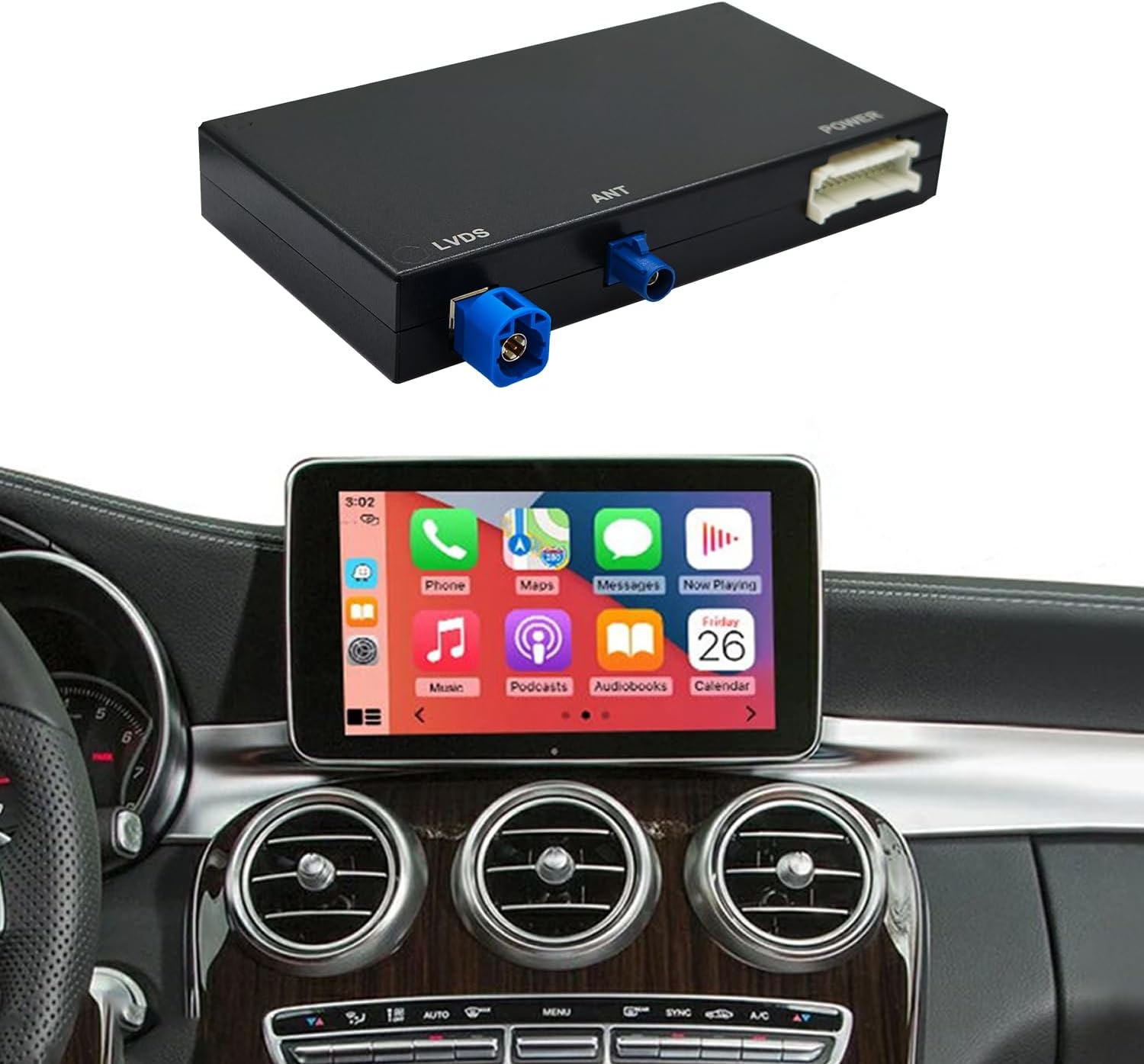 Compatible Vehicles: Wireless CarPlay Retrofit Kit Decoder for Mercedes-Benz models with NTG5.0/5.1/5.2 systems, including GLA/CLA (C117/X117/X156, 2015-2018), C/GLC-Class (W205, 2015-2018), B-Class (W246, 2016-2018), E-Class (W212, 2015-2016), S-Class (W222, 2014-2020), GLE/GLS-Class (2016-2018), V-Class (W447, 2015-2018), G-Class (2016-2018), and SLC (R172, 2016-2020) Be sure to check your car’s system version before making a purchase