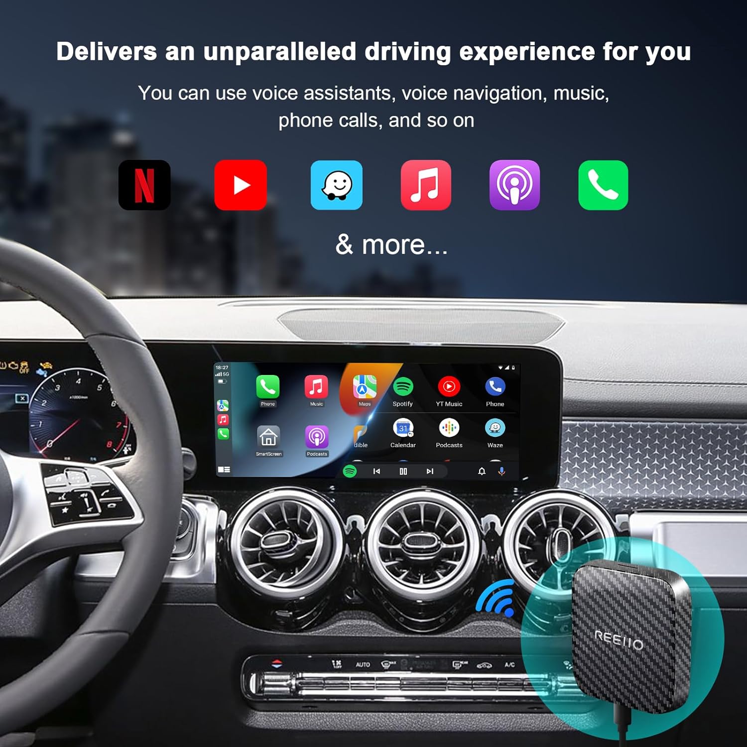 Switch to wireless CarPlay ▶ Convert your car’s wired CarPlay connection to wireless, freeing yourself from tangled cables for a clean, clutter-free experience. Enjoy easier driving with CarPlay or Android Auto, using voice assistants, voice navigation, music, phone calls, and more.