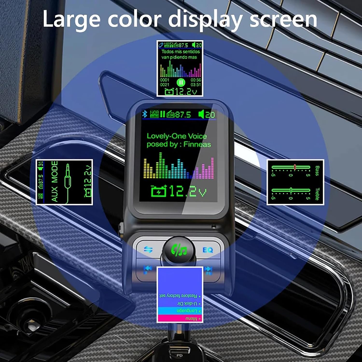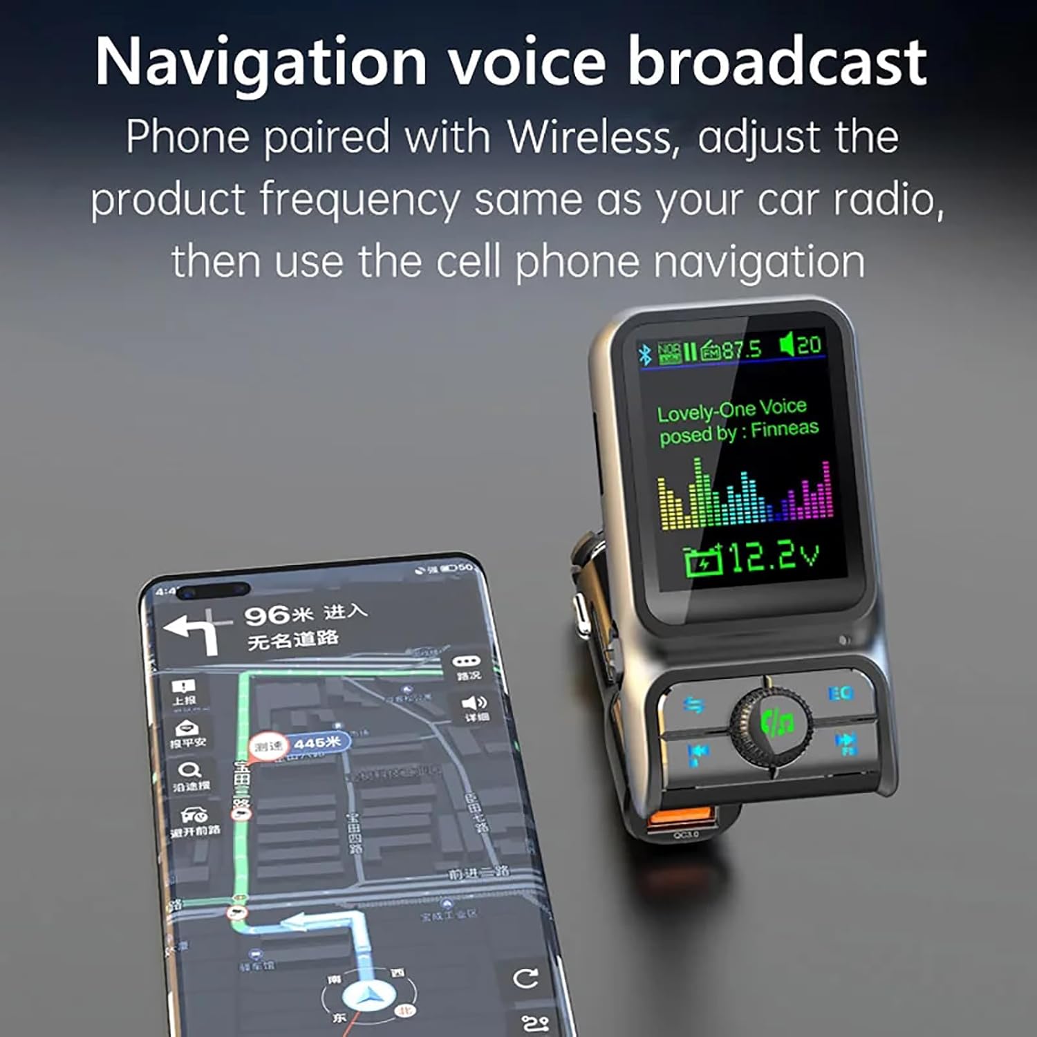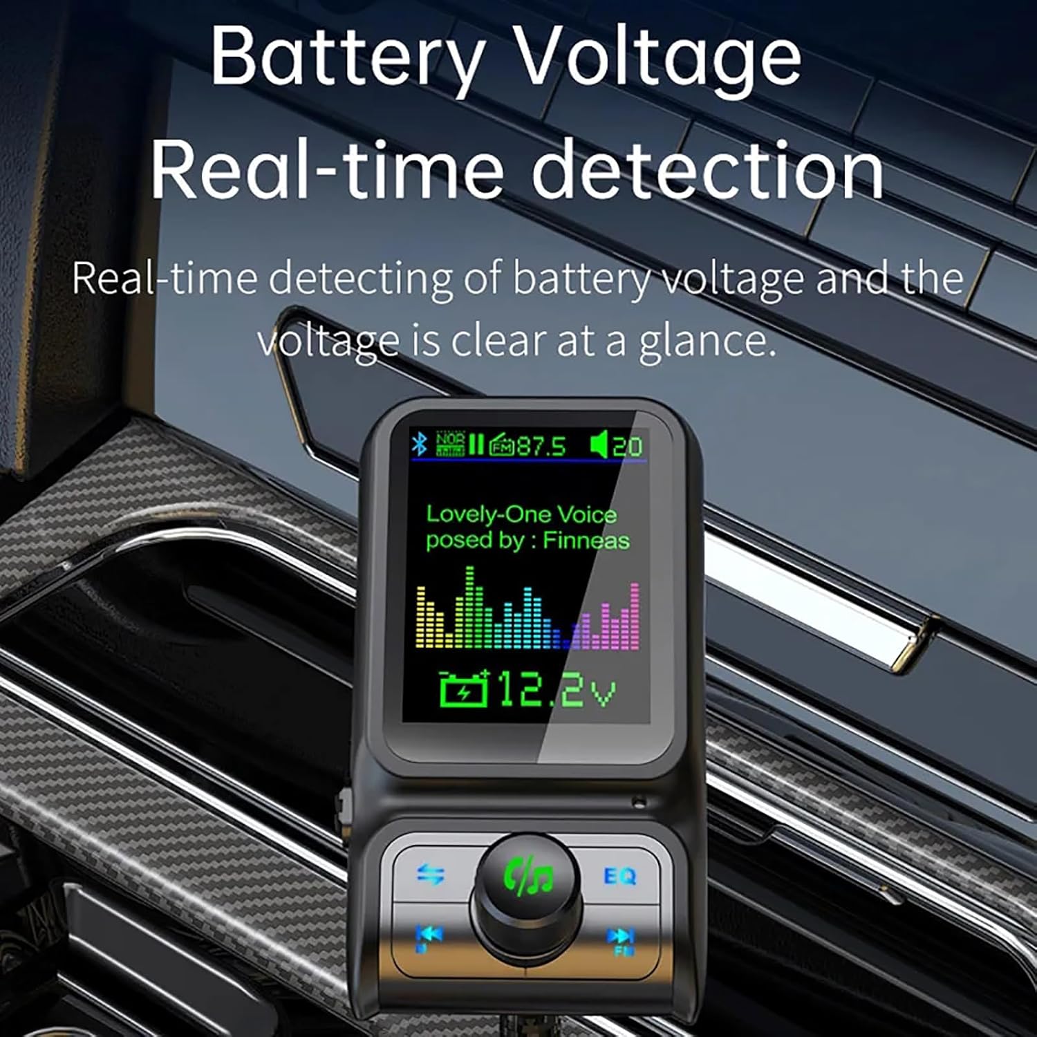 1.8 Inch LCD Display — Bluetooth FM transmitter has a 1.8inch screen for better displaying information like phone calls, FM channels, music, car battery voltage, etc