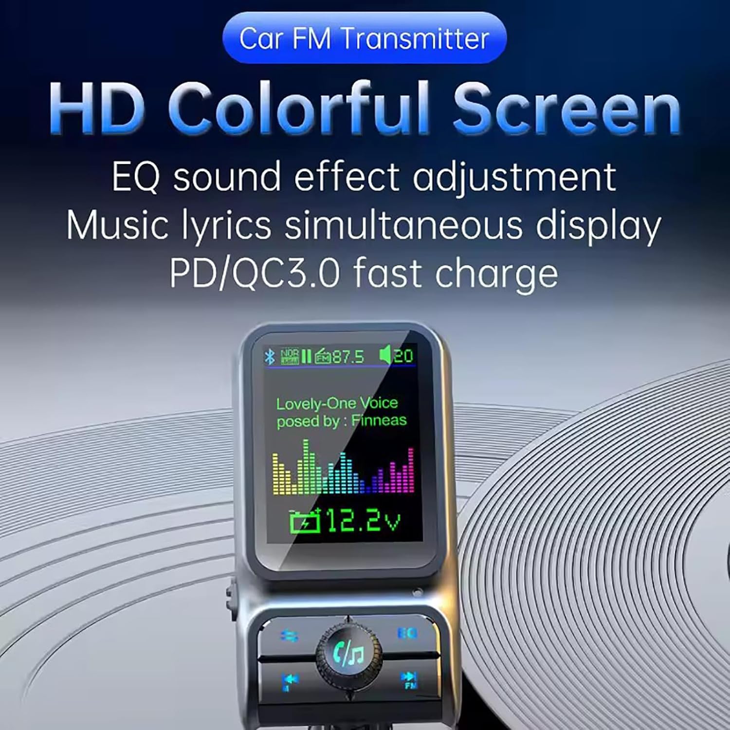 Wireless in-Car Bluetooth FM Transmitter Radio Adapter Car Kit, 1.8 Inch Display Supports TF/SD Card EQ and QC3.0 & 5V/2.4A Charging Hands-Free Calls