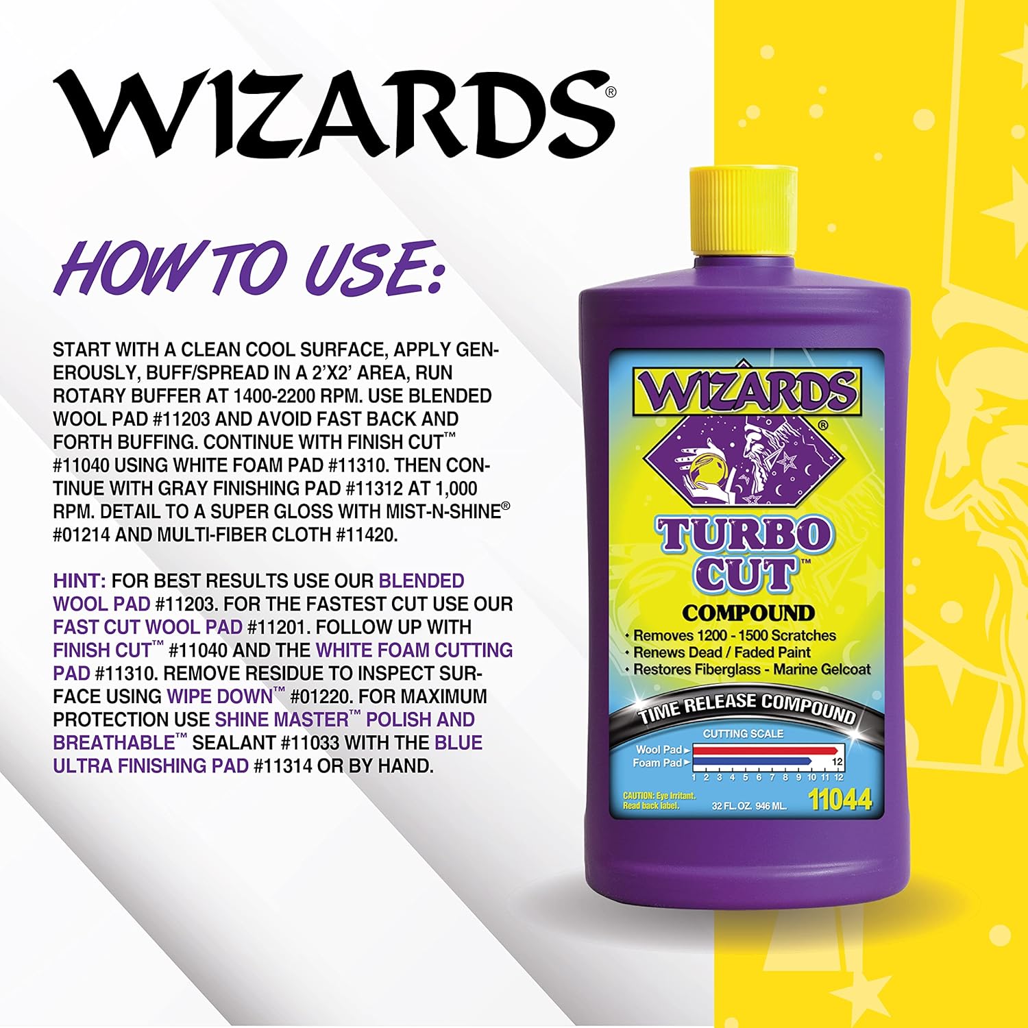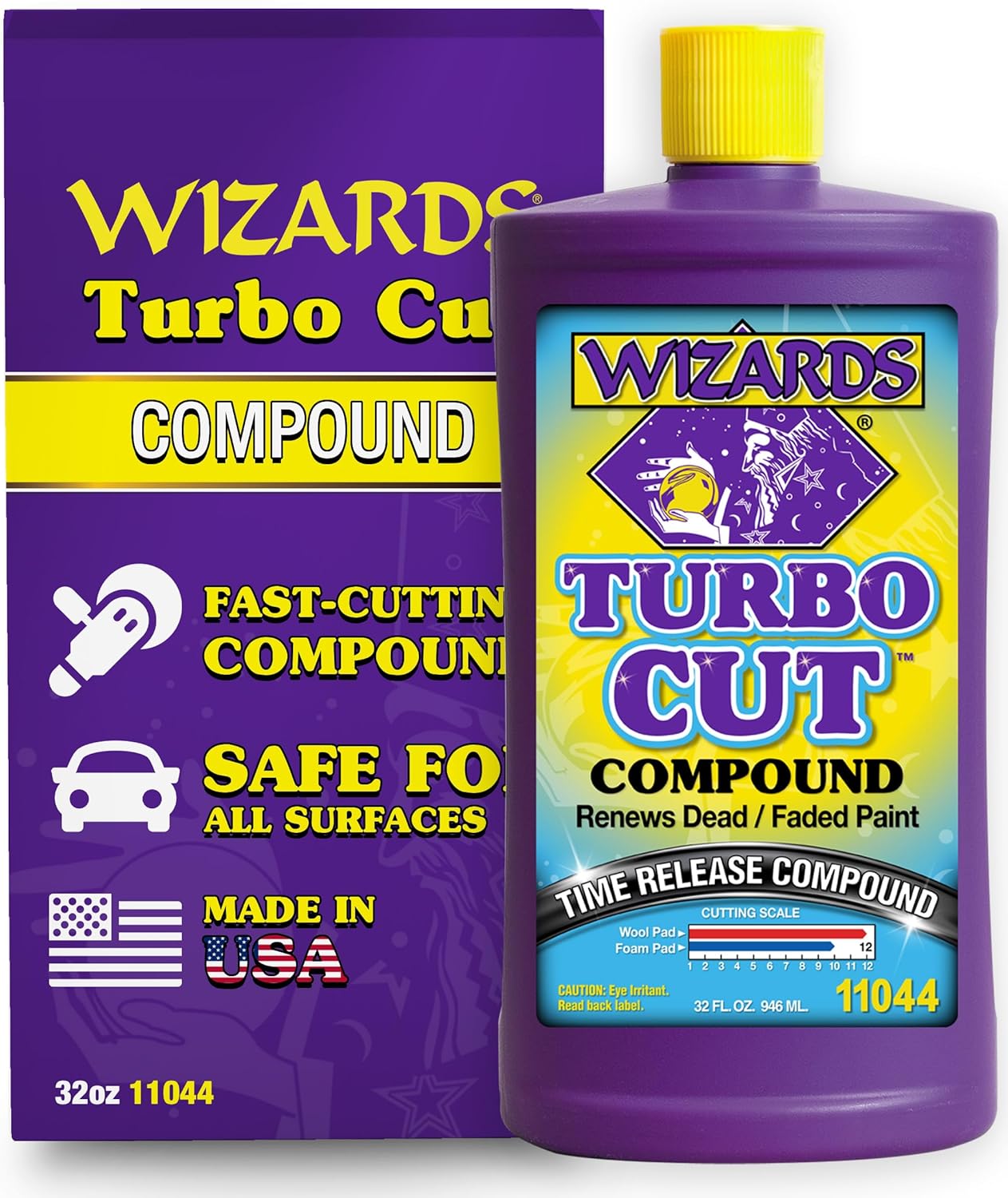 High-Speed Restoration for Paint, Gelcoat and Fiberglass: Wizards Turbo Cut delivers a fast and efficient cut, bringing lifeless paint, gelcoat, and fiberglass back to their original brilliance. This time-release car paint restorer provides a high-gloss finish on both fresh and aged paint, making it the perfect polishing compound for achieving a flawless look.