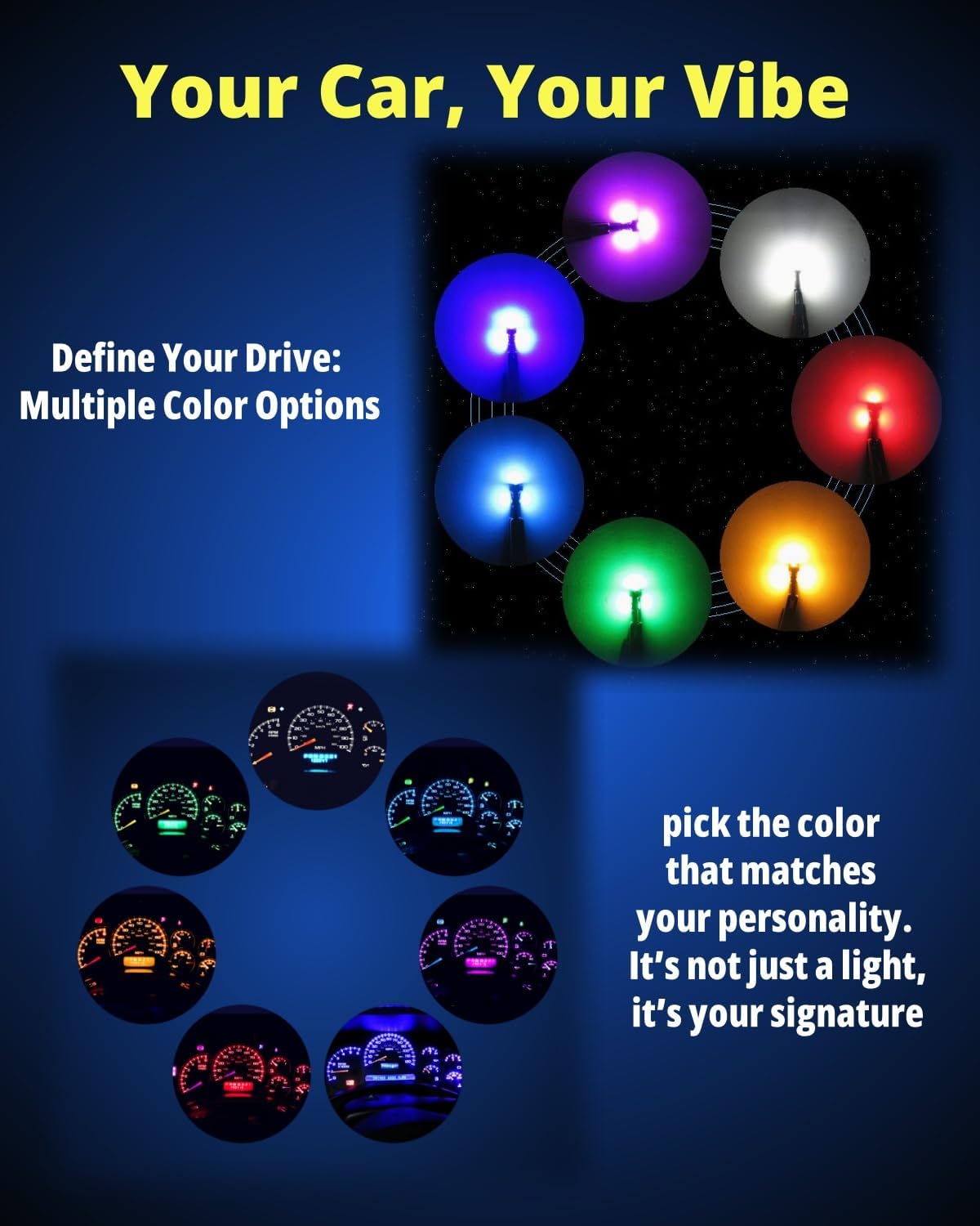 Wide Fit, Multi-Position Use: Swaps straight into dash gauge backlights, warning icons, indicator,clock, ash tray, radio dial, ignition, dash check, engine check, seat belt, indicator, gear shifter, map, dome, license plate, parking, side-marker, trunk, door, vanity mirror, glove box, HAVC,A/C light and more that use T5 or T10 bases lights