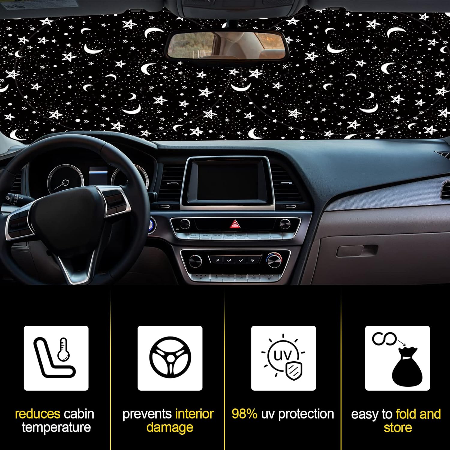 What You Will Receive: You will receive 1 x car windshield sunshade with moon and stars printed, the color of the starry sky is very flattering, it is an ideal accessory in hot weather, you can also share it with your friends