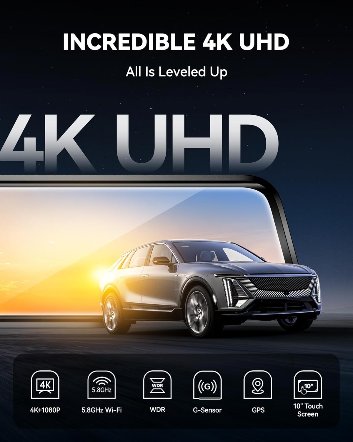 G930: 10” touch screen fits smaller mirrors. Stunning 4k+1080p resolution captures intricate details. Versatile design suits a variety of car models. Elevate your driving experience with cutting-edge technology.