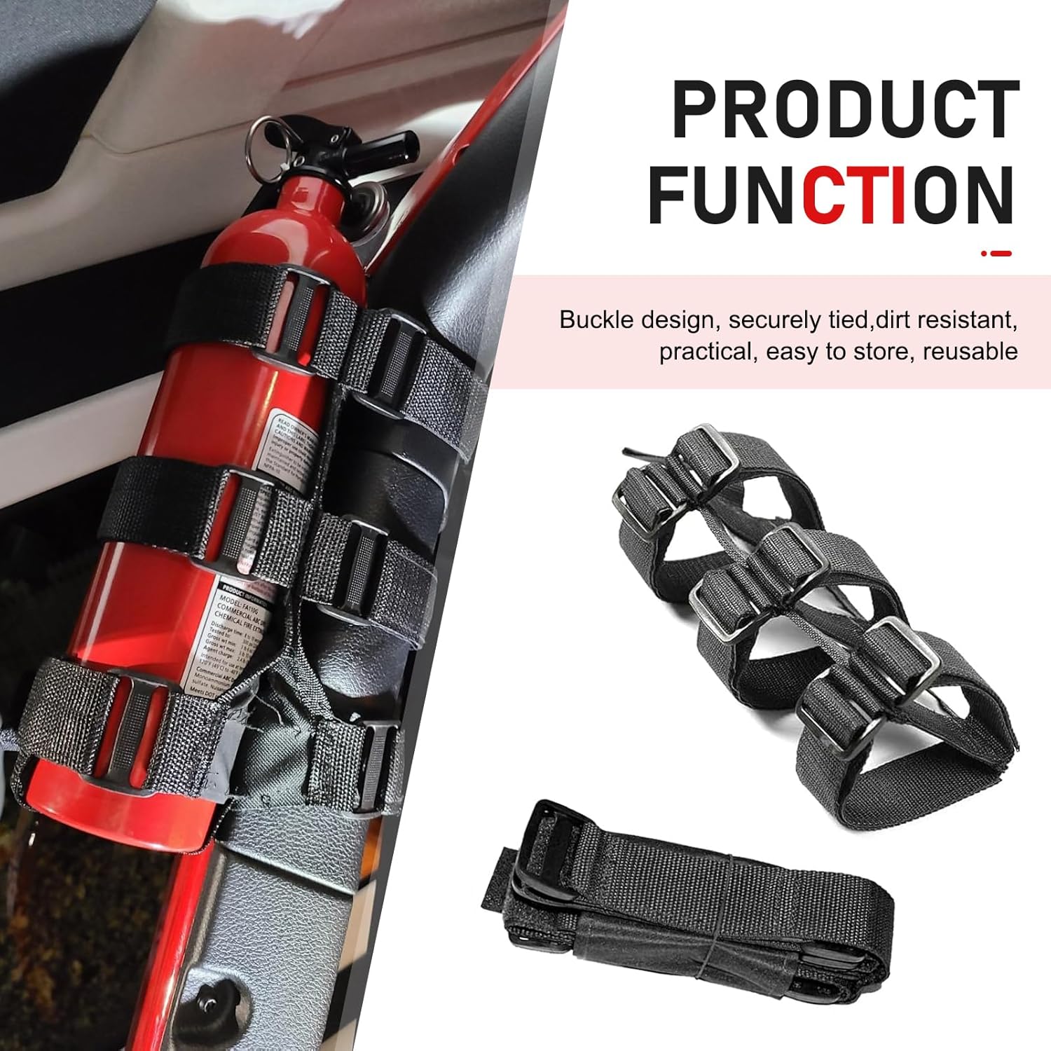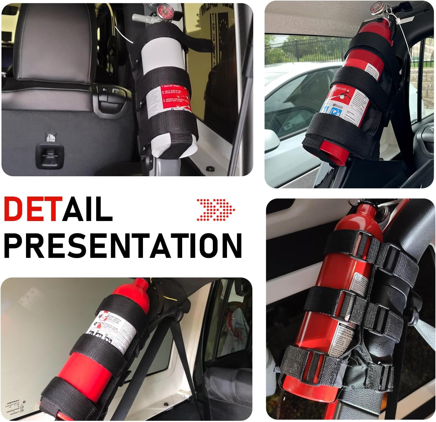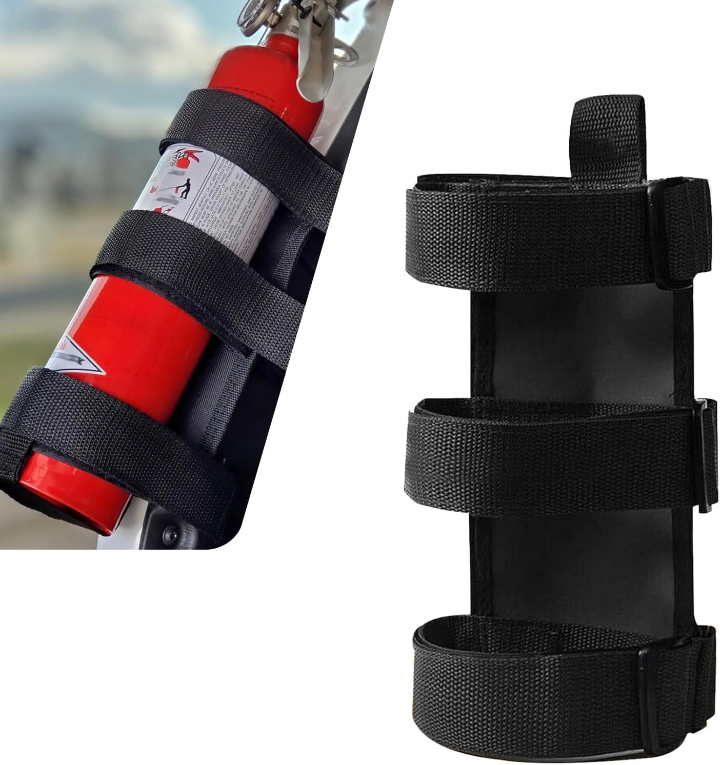 Secure and Secure: Equipped with 3 main straps and 1 bottom auxiliary strap, providing all-around support to prevent the fire extinguisher from shaking or falling while driving. It can be neatly installed on the roll cage without taking up extra space, keeping the vehicle interior tidy and organized.