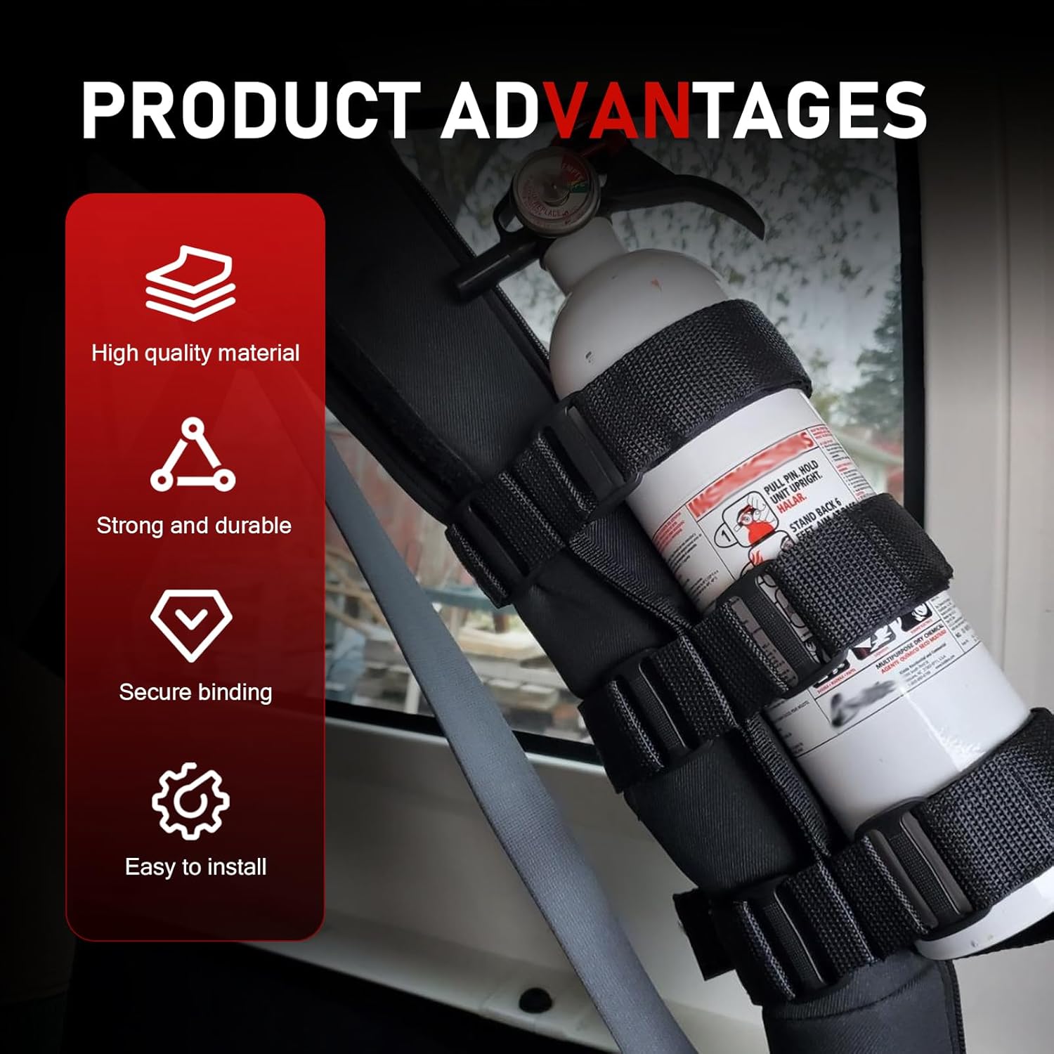 Quick Access: No more frantically searching under seats or frantically searching in emergencies. This fire extinguisher is within easy reach, ensuring quick access during off-road adventures or unexpected emergencies.