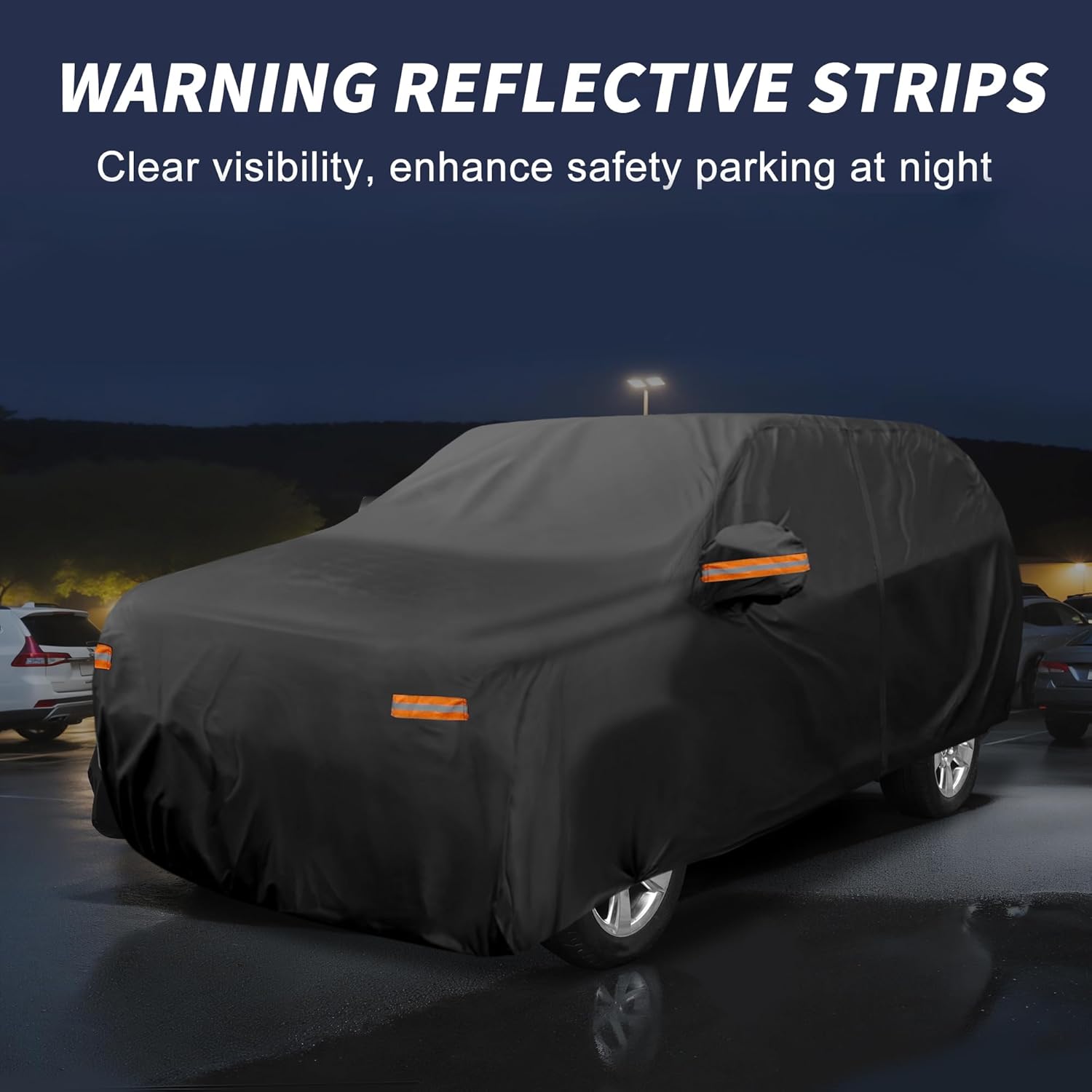 [Good Design] 6 pcs Reflective Warning Bar: Designed with fluorescent orange color emit light at night to avoid unexpected impact. Left Side Door Zipper: For easy access anytime. Windproof Straps and Elasticized Hem: Windproof design to fix on the car against strong winds.