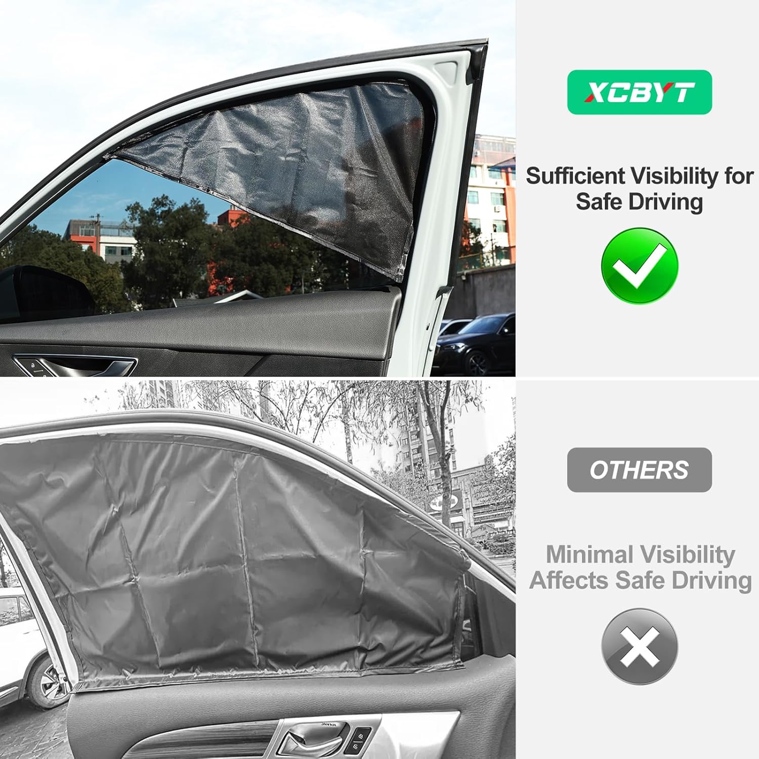 Car Window Shades for Driver: Our side window sun shade is a partial shade design that is built for drivers. It helps drivers block 50% harsh sunlight without obstructing the rearview mirror view for your driving safety