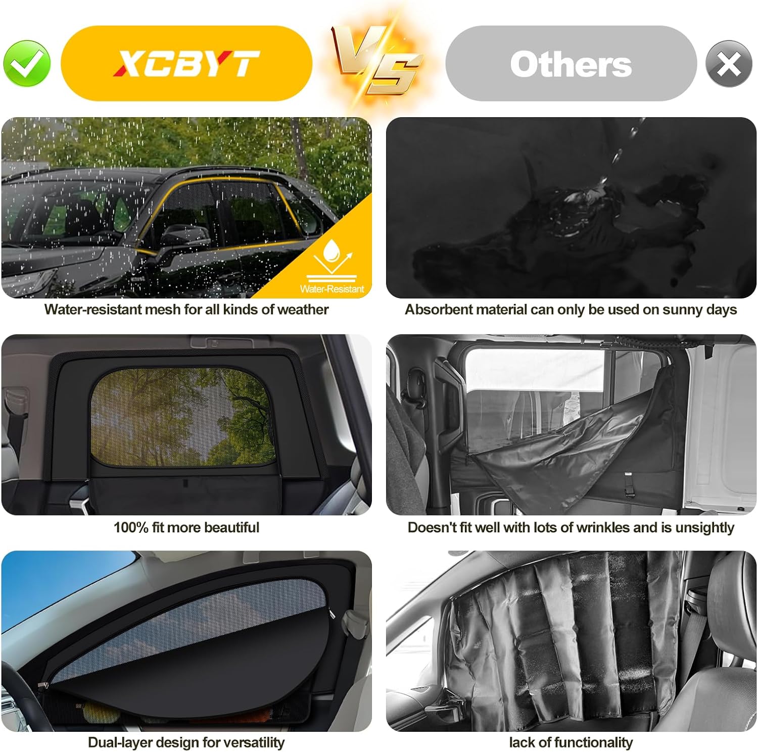 The XCBYT Wrangler Window Sunshades (4 PCS, 2007–2018) are an excellent accessory for Jeep owners who want privacy, UV protection, and comfort. Featuring a dual-layer design with breathable mesh and blackout cloth, these sunshades block up to 99% of harmful UV rays while keeping the interior cool and shaded.Installation is easy, and the shades fit snugly on Jeep Wrangler windows, preventing sunlight glare while maintaining airflow for comfort. They are perfect for car camping, sleeping in your vehicle, or simply protecting the interior from sun damage during daily use.The durable materials hold up well over time, resist fading, and provide a stylish, functional solution for anyone spending time in the sun. With 4 pieces included, all side windows are covered for complete protection and privacy.Pros:Dual-layer mesh and blackout cloth for UV protection and privacyBlocks up to 99% of harmful UV raysFits Jeep Wrangler 2007–2018 perfectlyEasy installation and snug fitIdeal for car camping, sleeping, or daily sun protectionDurable, fade-resistant materialSet of 4 covers all side windowsCons:None so farOverall, the XCBYT Wrangler Window Sunshades are highly effective, durable, and practical — a must-have for Jeep owners looking to stay cool, protected, and private! ☀️🚙✨