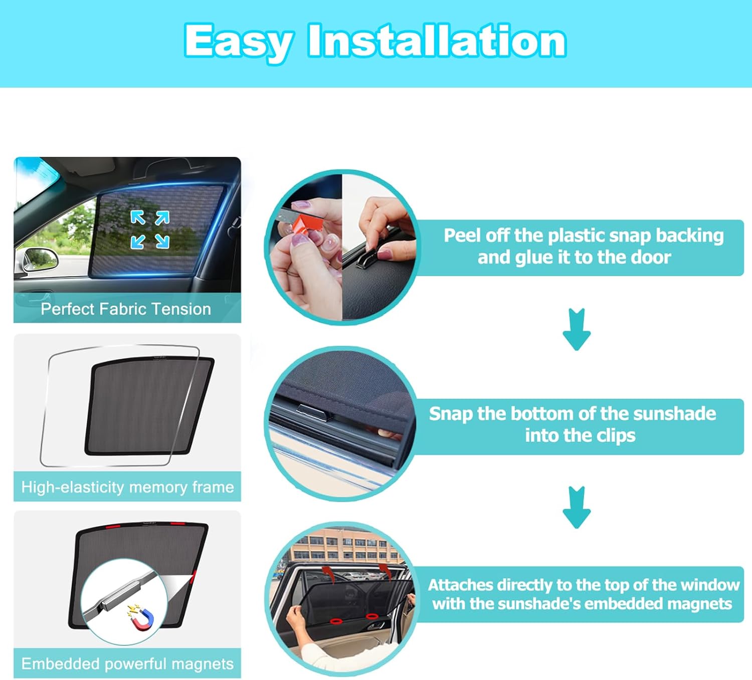 Quick Magnetic Installation & Secure Fit: Designed for effortless setup, the window shade for baby in car features strong magnetic edges that easily snap onto your door frame. For non-magnetic surfaces, we include adhesive-backed buckles to ensure a stable, wind-resistant hold, these snap shades for car windows are a perfect gift for campers or busy parents