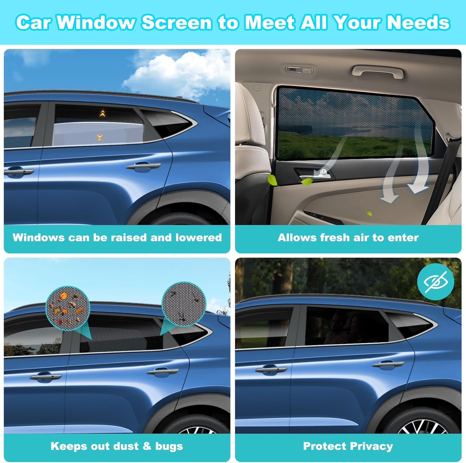 Vehicle-Specific Fit for Hyundai Tucson 2015-2020: The tucson window shades are precision-cut to fit the 2015 2016 2017 2018 2019 2020 tucson side windows. The front car window screen provides partial coverage that maintains clear visibility of mirrors for safer driving, while the rear window shades offer full coverage for enhanced privacy and UV protection – perfect for road trips, sleeping, or nursing on the go