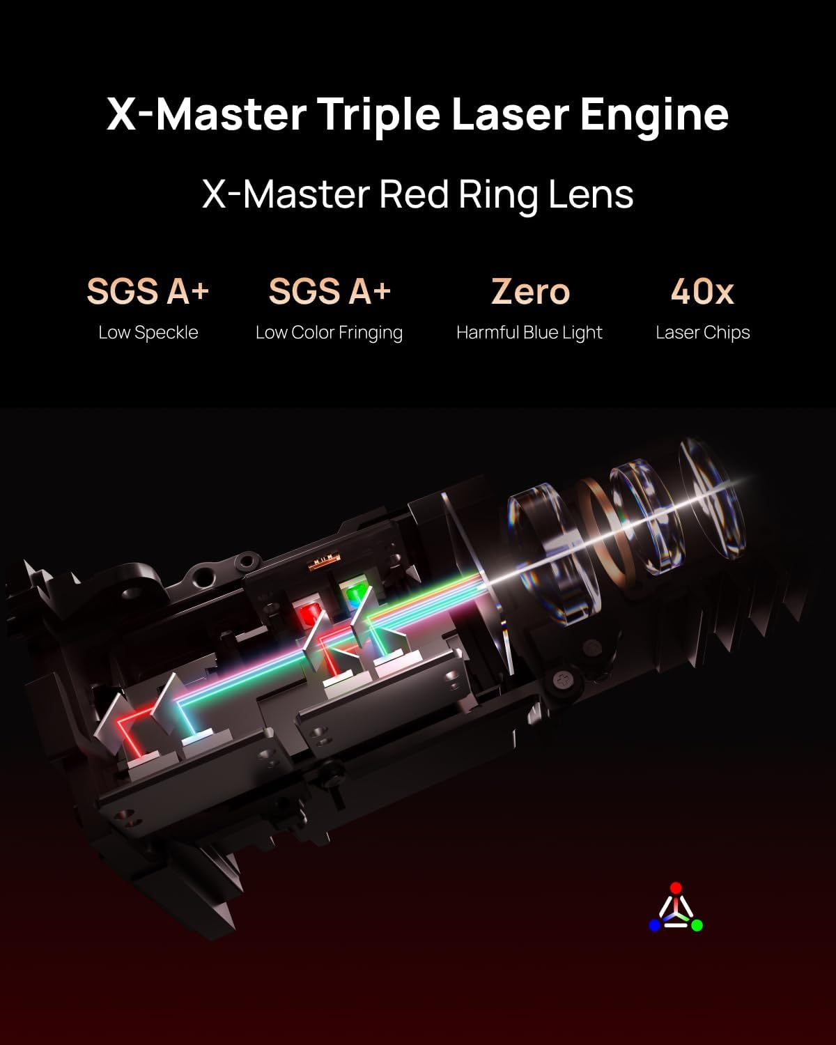 Daylight Ready, Triple Laser Powered: Our advanced X-Master RGB triple laser engine delivers 5700 ISO lumens of peak brightness, 20,000:1 contrast, and 110% BT.2020 color coverage—ensuring vivid, accurate images with exceptional depth and clarity.