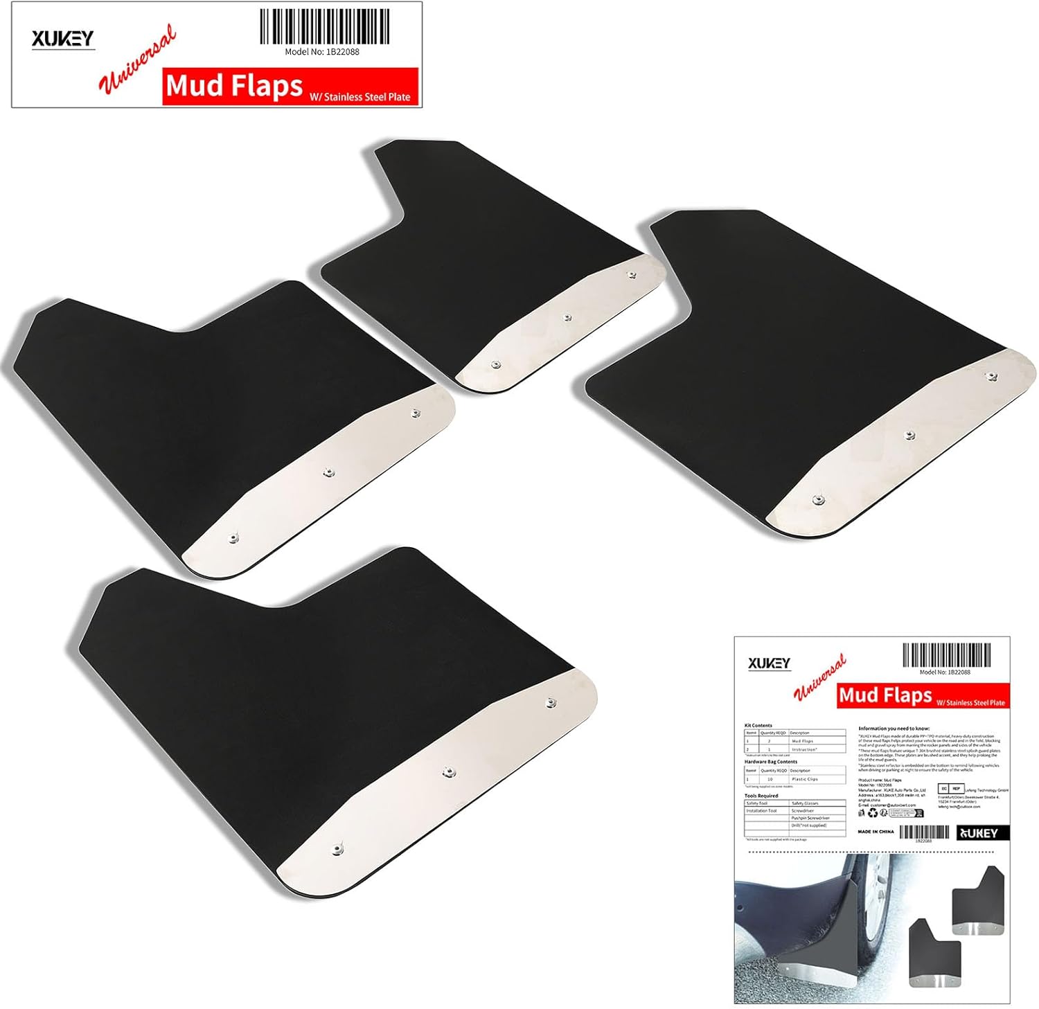 XUKEY Mud flaps are not pre-drilled, they need to be drilled according to your vehicle for your car’s protection. Package Includes Screws and Fitting instruction.