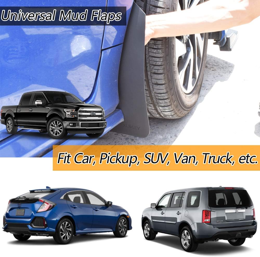 XUKEY Deluxe Molded Splash Guards provide excellent lower body protection and accent the vehicle styling. Made of PP+TPO Plastic to be rigid and durable. They are molded to the contours of the vehicle for a custom fit.These tough-wearing mud guards seamlessly blend with the vehicles styling and minimise the risk of dirt, road debris and stone chips flying up from the Front and rear tyres.Provide additional protection whilst enhancing the sporty exterior of your vehicle.