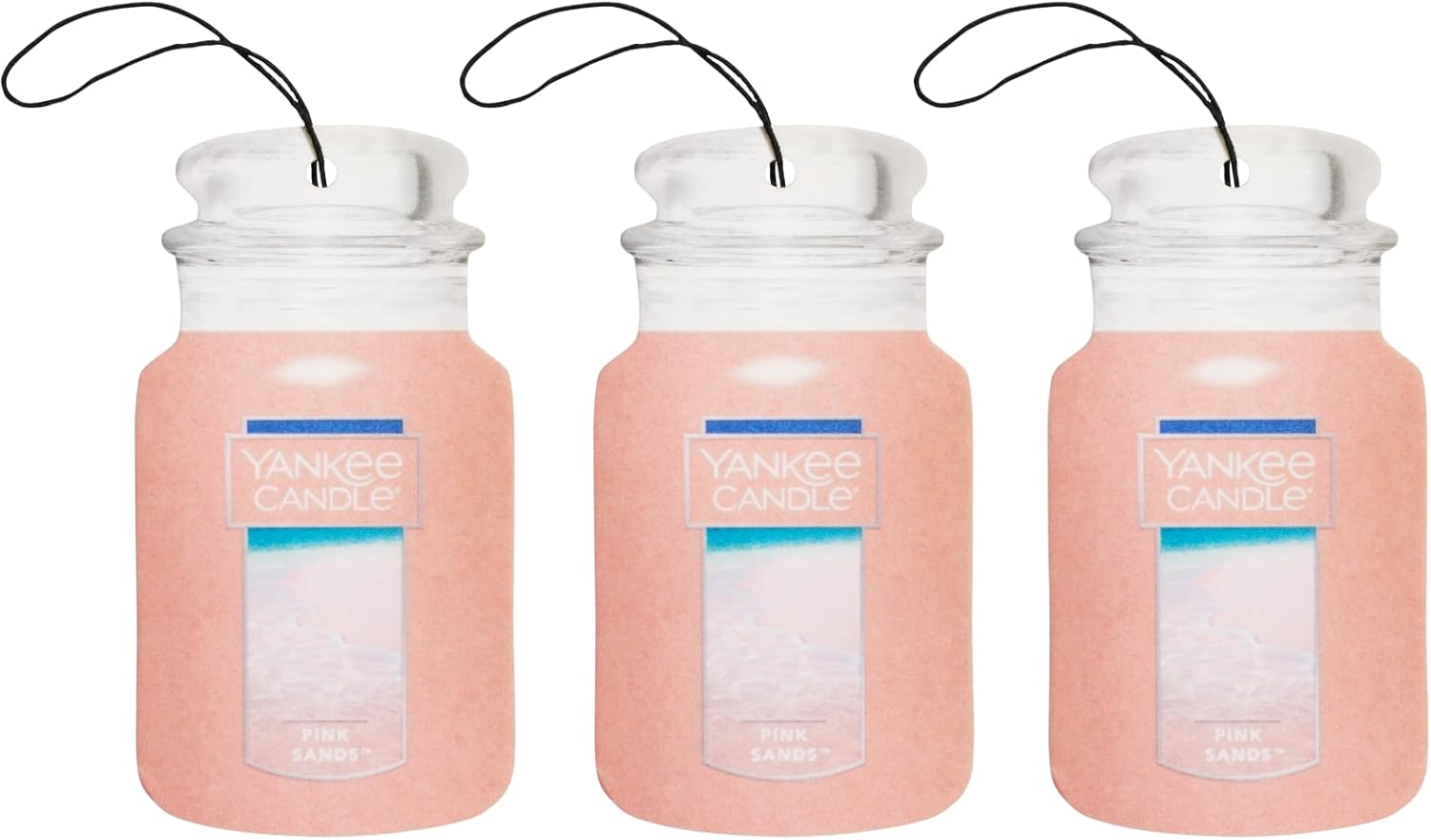 Yankee Candle Classic Paper Car Jar Air Freshener, Hanging Car Freshener, Long Lasting Car Fragrance, Pink Sands (Pack of 3)