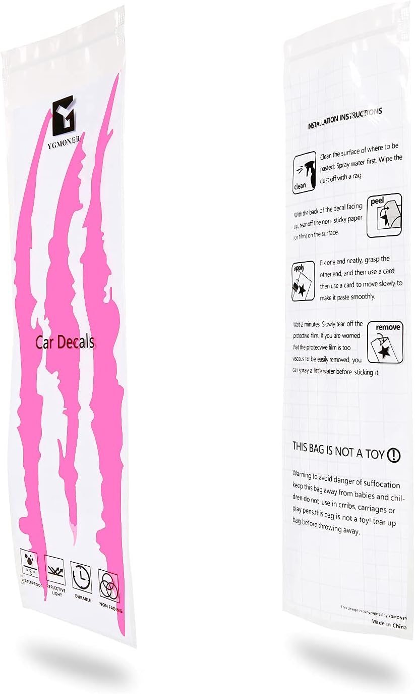Feature: Material: High Quality PET Decals Reflective texture, won’t crack, fade or peel, 6+ year outdoor rated life. Package Inludes: 2 pieces claw marks car decals