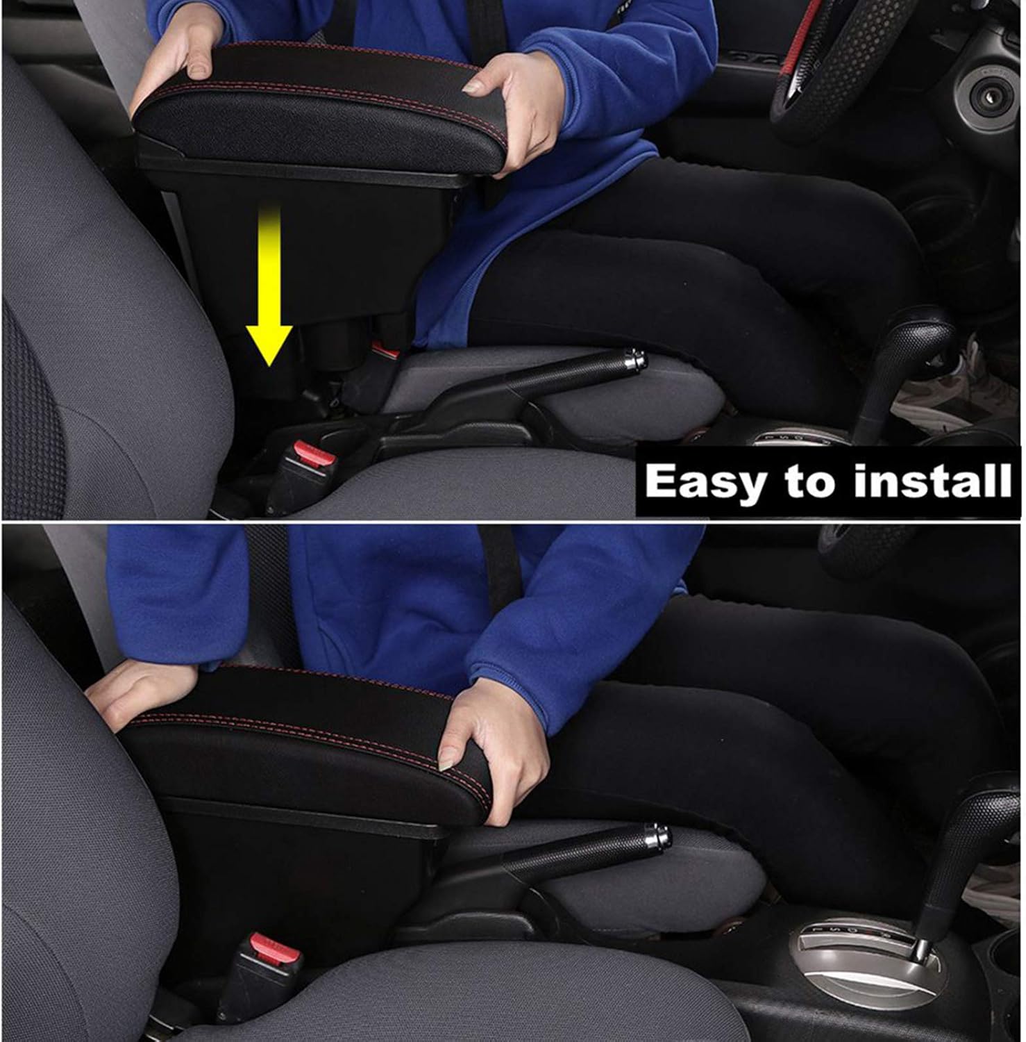 It is easy to install, firmer and not loose. You only need to put the armrest box into the position behind the handbrake through pressure, without damaging the original car structure. When you are driving, it can better support your arm and relieve arm fatigue and pain.