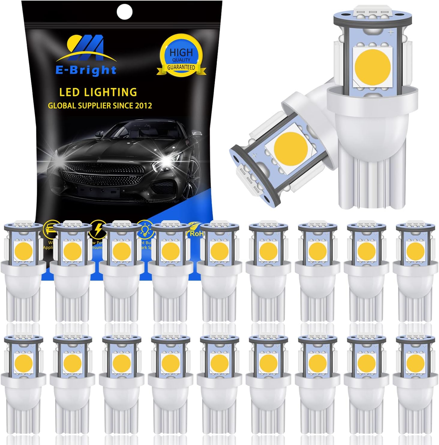 YM E-Bright 20-Pack T10 194 Led Bulb, White 5050 5 SMD 2825 W5W 912 168 LED Bulb Replacement For Car Interior Lights Clearance Wedge Dome Trunk Dashboard License Plate Light Lamp DC 12V