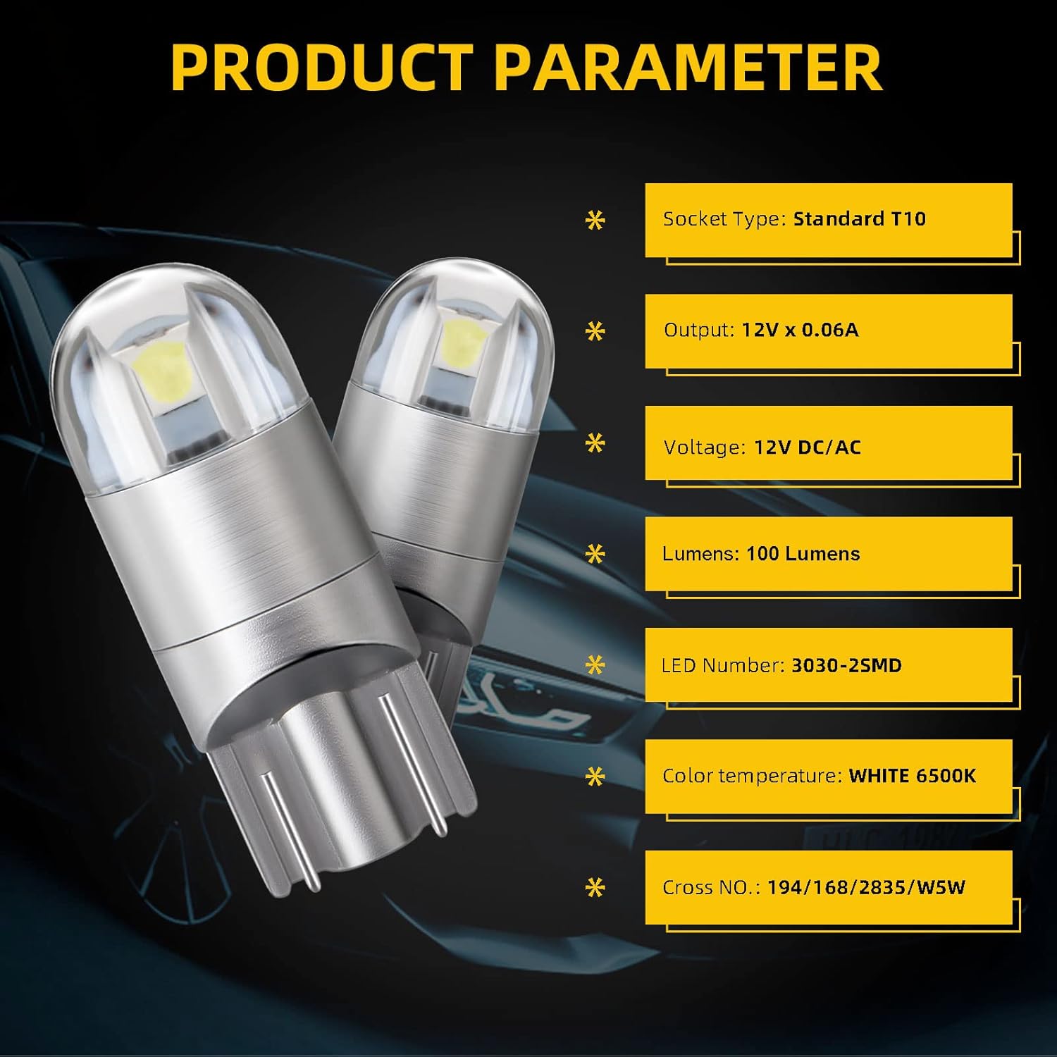 13 reviews for YM E-Bright T10 194 Car Interior Light 168 W5W Led Bulb 3030 Chips 2825 LED Bulb Dome Map Trunk Door Courtesy Light Clearance License Plate Light No-Polarity,AC/DC 12V,White,Pack of 10
