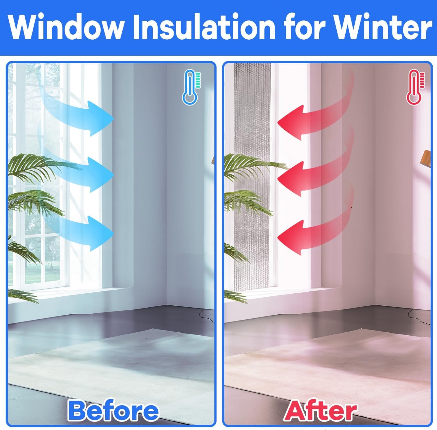 Temperature Protection: The window heat blocker has good sealing performance and can withstand strong sunlight without affecting the indoor environment. It is window insulation for summer heat and window insulation for winter