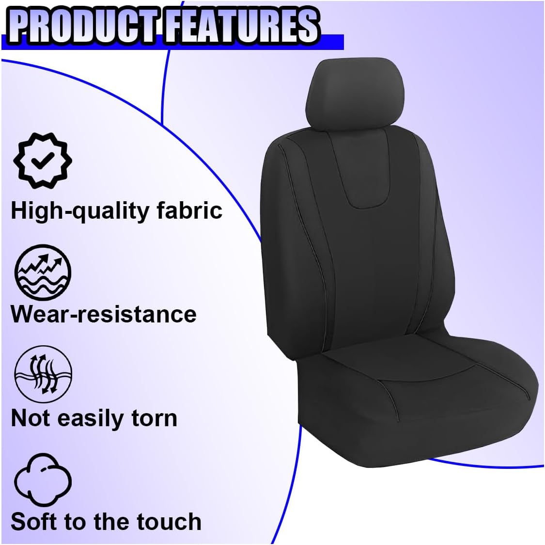 YoRise 2PCS Car Seat Covers, Comfortable Breathable Front Seat Covers, Highly Elastic Automotive Seat Protector Cover Accessories for RV, SUV, Truck, Sedan (Black)