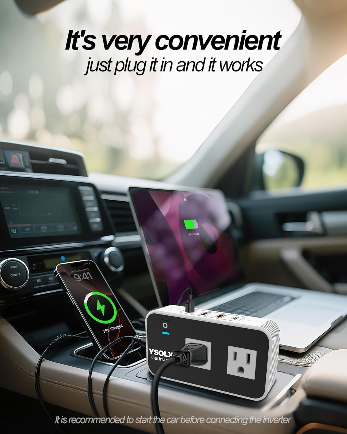 This is a must have for parents. Road trips, or just 1 hour drives.. kids always need to be plugged in and charging. This inverter is solid. It has many plug in points, including 2 regular house plug ins on the top and a C size port and usb ports. Make sure it’s plugged in AND the blue light is on for power. You have to turn it on each time you turn on the car. It charges phones faster than just plugged into the cars usb. Works well and has a fan to cool it down but is not loud. I have one in my car and my wife’s car as well. Get it. Worth it.