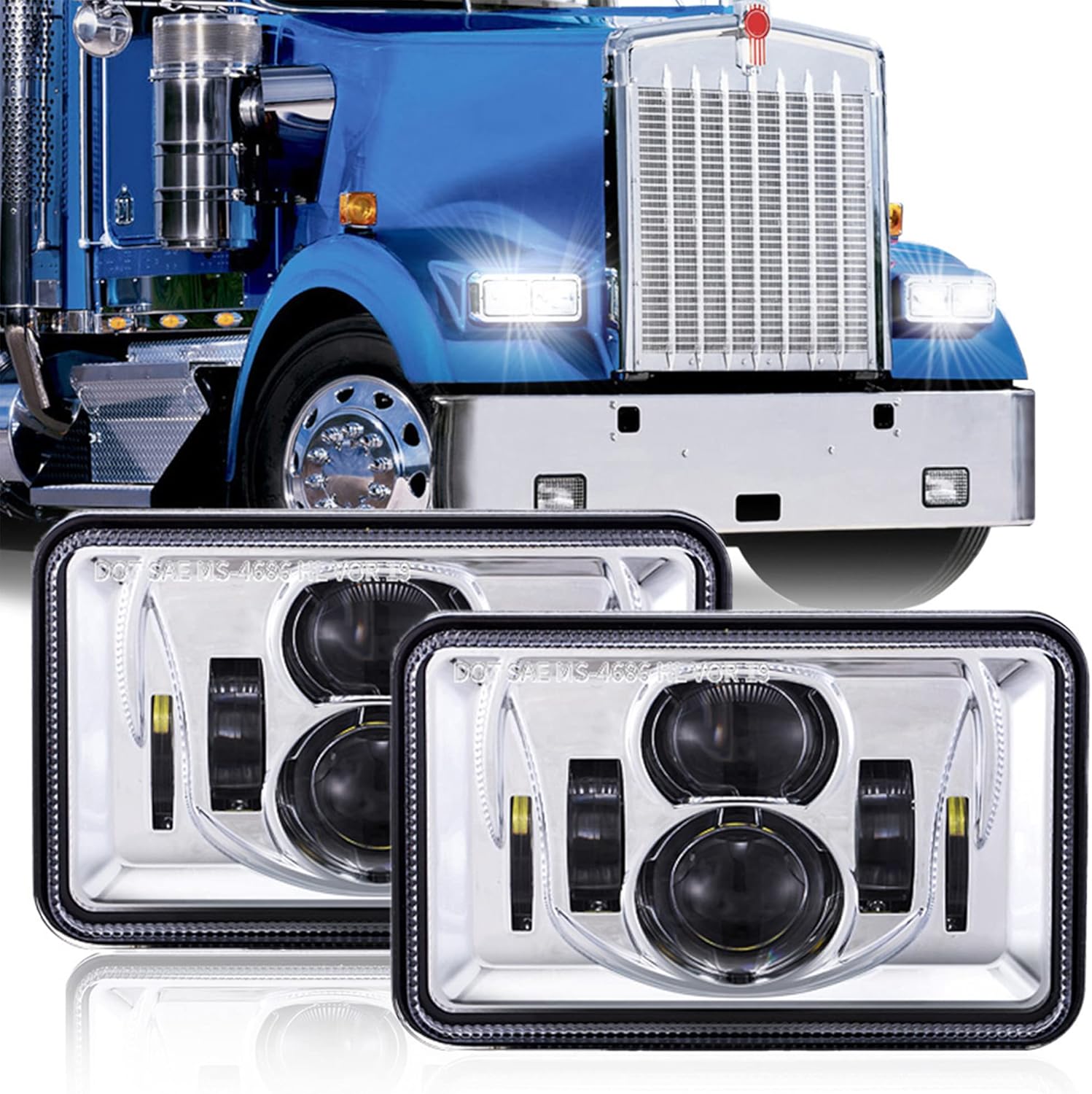 Excellent Visual Effect: Made of 100% original High-Intensity Leds, 4×6 Headlights provide effective light output up to 6000~6500K Clear White. Much brighter than similar 4×6 rectangle headlights and hid headlights. Super bright light beam dispels the darkness and light up the forward road.